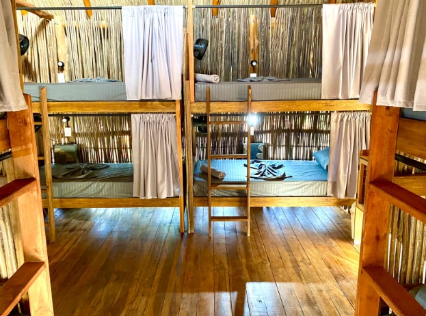 "Espacio versátil para 3 (o pareja que busca amplitud). Habitación en Ecohotel sostenible con energía solar y ambiente natural." Lo destacado: Internet Starlink Capacidad: camarote (Cama doble abajo - Cama sencilla arriba). Baño privado. Plus: Desayuno incluido y energía limpia 24/7 para dispositivos. Entorno: Acceso directo a playa privada y piscinas de agua pura. Logística: Contamos con restaurante propio (no se permite cocinar).