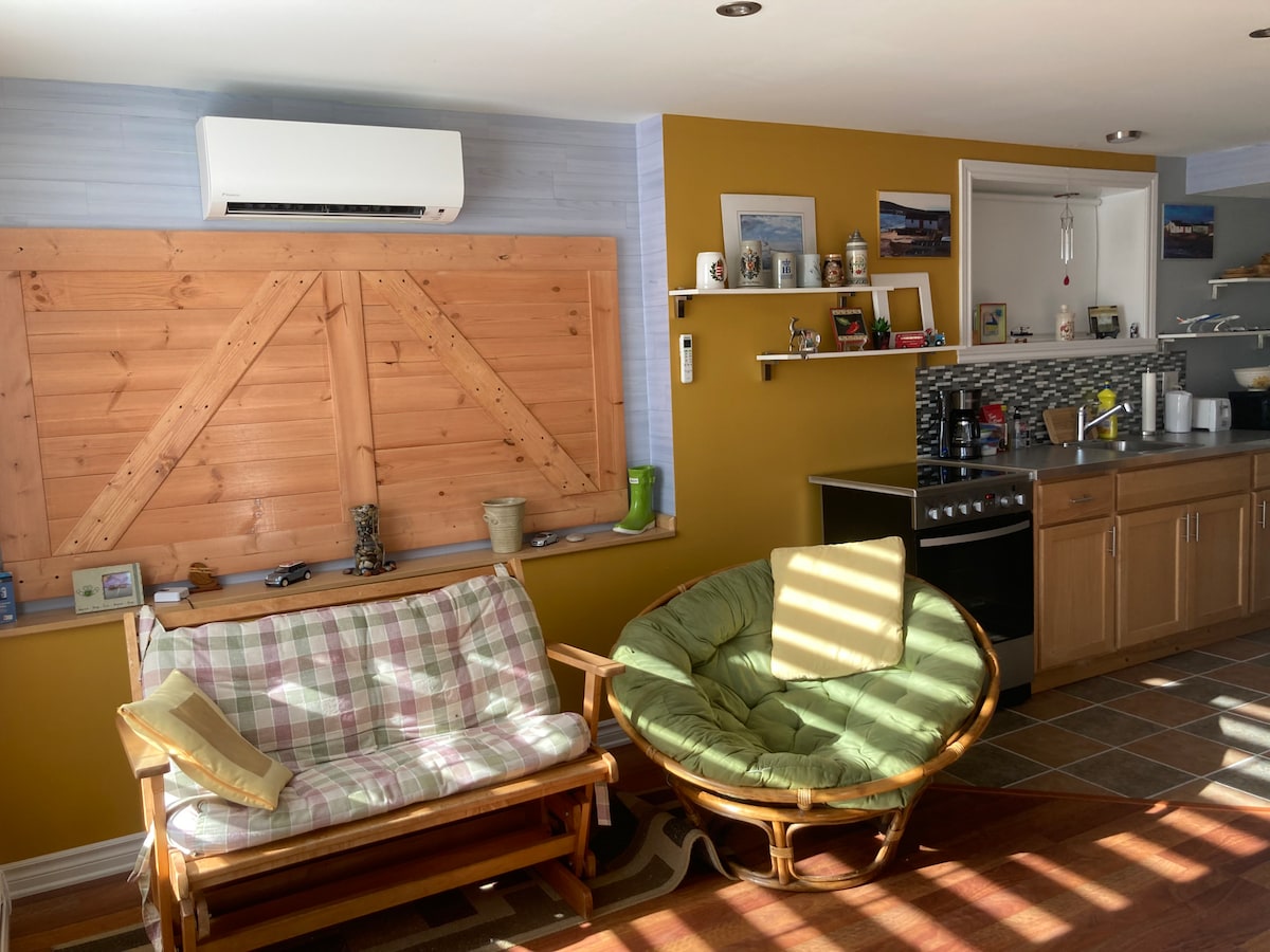 Fáilte go dtí ár Svuít Íoslaigh 1 Seomra Leapa teolaí atá neadaithe i gComharsanacht shuaimhneach in Moncton, cuireann an spás gleoite seo saoire fhoirfe ar fáil do thaistealaithe aonair nó do lánúineacha. An spás Cuimsíonn sé bealach isteach príobháideach, leaba chompordach de mhéid banríona, seomra folctha iomlán, cistinéad, Wi - Fi, agus páirceáil saor in aisce. Rochtain thapa agus éasca ar an aerfort, ar an idirthuras poiblí, ar pháirceanna, ar shiopaí agus ar bhialanna. Áiteanna a bhfuil tóir orthu timpeall: Aerfort - 7 nóiméad Meall Champlain - 7 nóiméad Walmart - 7 nóiméad Sárstór - 8 nóiméad