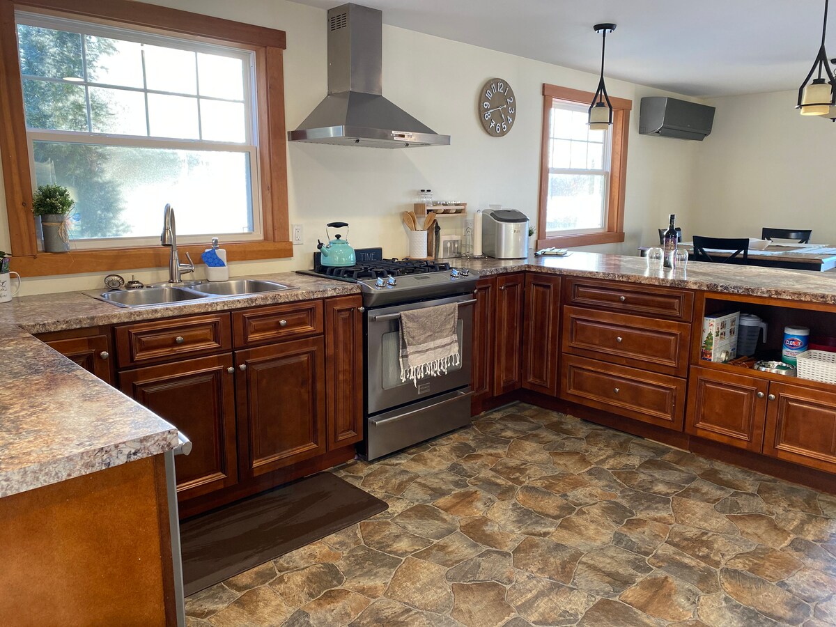 Teachín beag príobháideach cois locha. Réadmhaoin chúlráideach in aice le Páirc Chúige álainn Ellenwood, atá lán de chosáin fánaíochta/siúil. Mion - athchóirithe, ach áit an - chluthar, glan le fanacht. Tá an Loch glan agus iontach le haghaidh snámha! Cistin iomlán ina bhfuil an chuid is mó de gach rud, poll dóiteáin lasmuigh le haghaidh oícheanta deasa, agus pianó ar feadh laethanta na coise tinne. Caidéal teasa, beárbaiciú, op snáithín, & Roku TV + Netflix! Tá sorn adhmaid feidhmiúil le haghaidh teas agus ambiance breise, adhmad nach bhfuil san áireamh, áfach.
