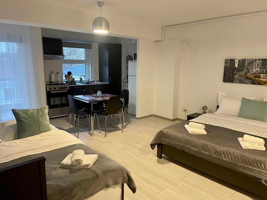Árasán stiúideo geal fairsing atá suite i bhfoirgneamh 10 n - urlár, nua - athchóirithe le cistin nua - aimseartha lánfheistithe ina bhfuil iarta leictreach, cuisneoir comhtháite agus cuisneoir, agus gach earra cistine riachtanach eile chun béile gourmet a dhéanamh. Tá sé suite i gceantar iontach le comharsanacht chiúin, níos lú ná 15 nóiméad go Lár na Cathrach, le hiompar poiblí díreach chuig an seanbhaile, gar do réimse mór páirceanna agus lochanna áille ar nós Tei, Plumbuita, Circului. Carrchlós saor in aisce ar fáil.
