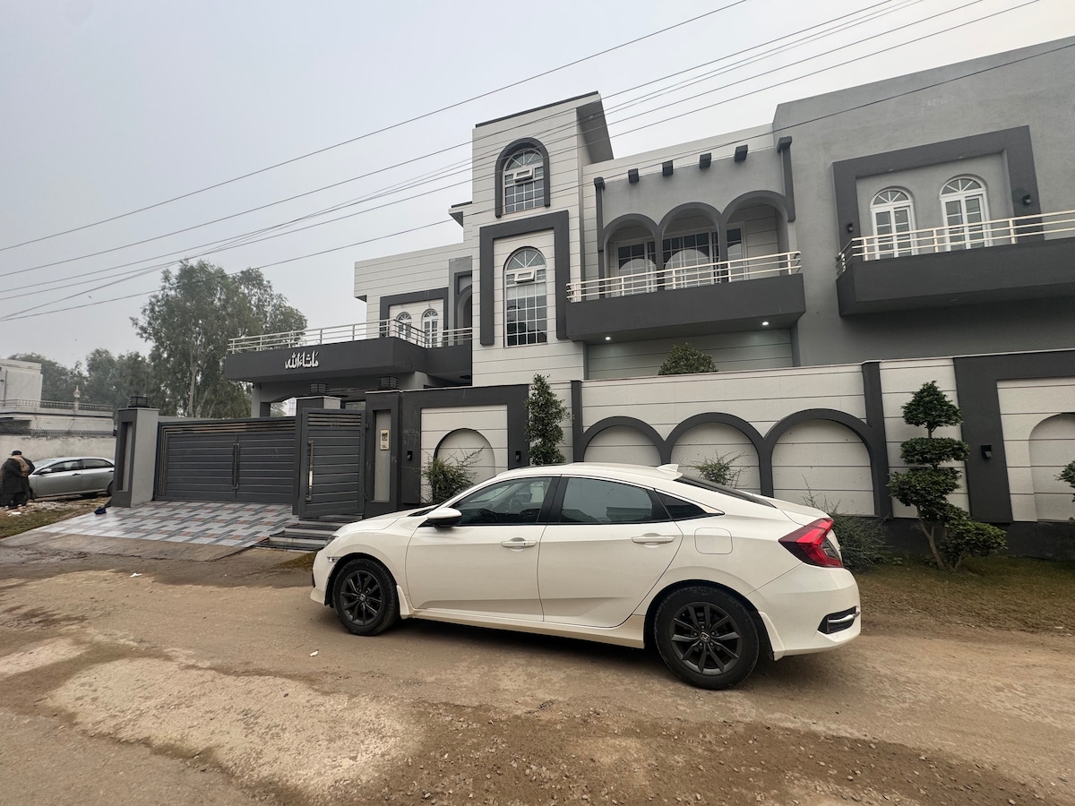 Suite i gcroílár City Housing, Jhelum, teach álainn fairsing le 4 sheomra leapa, cistin lánfheistithe, 4 sheomra folctha, seomra suí agus suíocháin chompordacha. Fearais nua-aimseartha, earraí cócaireachta, agus áit itheacháin le plean oscailte. Tá meascán foirfe de stair agus dúlra sa teach suaimhneach seo. Níl sé ach 10 nóiméad ó Abhainn Jhelum, Lár Jhelum, agus 30 nóiméad ó Láithreán Oidhreachta Domhanda UNESCO, Daingean Rohtas. Déan iniúchadh ar theampaill ársa ag Tilla Jogian nó téigh ar thuras lae go Islamabad. (1.5 uair an chloig sa charr)