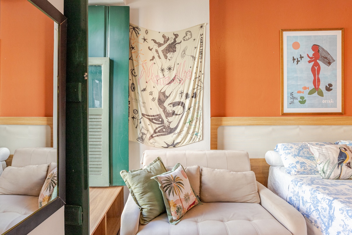 Lonnaithe ar phríomhshráid Santo Antônio Além do Carmo, comharsanacht bhoihéamach agus chónaithe san Ionad Stairiúil, freastalaíonn mo theach ó lánúineacha go teaghlaigh mhóra ar thóir tearmainn timpeallaithe ag caiféanna, bialanna, dánlanna, cearnóga agus alleys gleoite cóbáilte den scoth. Léigh an liostú iomlán, le do thoil Déan an áirithint, seiceáil na treoracha a gheobhaidh tú 48 uair an chloig sula dtiocfaidh tú, go háirithe an Treoir Tí, chun fanacht ciúin compordach a chinntiú.