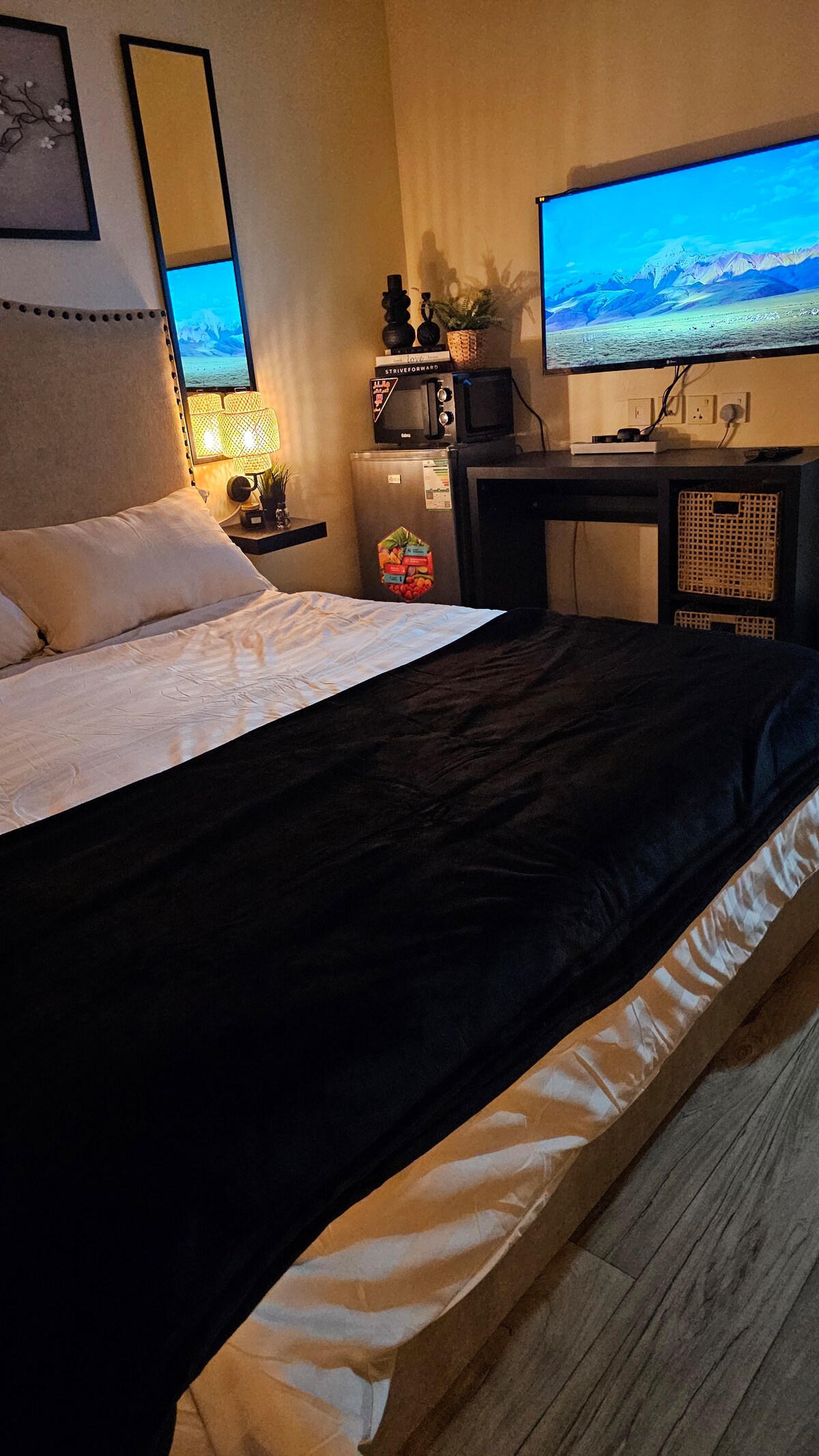 ✨ استديو أنيق بتصميم هادئ ومريح ✨ استمتع بإقامة تجمع بين الراحة والخصوصية التامة، في استديو مؤثث بأناقة مودرن وألوان تبعث على الاسترخاء 📍 الموقع: شمال الرياض – بالقرب من بوليفارد الرياض وصاد سكوير، وسط منطقة حيوية تعج بالمطاعم والمقاهي والخدمات على مدار الساعة. 🚪 دخول ذاتي لتجربة راقية بدون انتظار. 💫 لحظاتك هنا… تجمع بين الفخامة والراحة والهدوء. نتمنى لك إقامة سعيدة، وحياك الله 🤍 ⸻