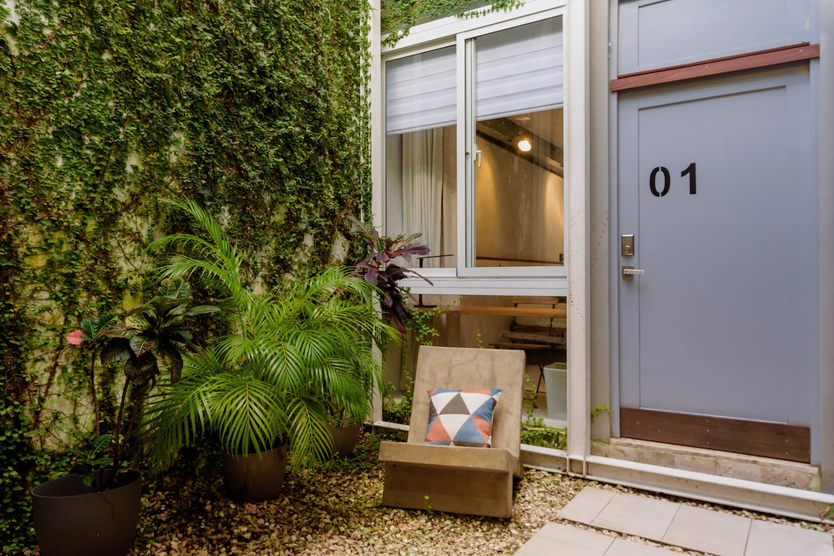 Casita 103 blends Scandinavian design with the charm of Zona Colonial. This 3-story boutique gem features three bright studio rooms with fully equipped kitchens and bathrooms, a climatized jacuzzi, a tranquil central patio, and a rooftop with panoramic city and sea views. Enjoy hammock lounging, outdoor dining spaces, gentle evening lighting, tropical greenery, cozy seating areas, and refined comforts throughout this beautifully restored architectural treasure, ideal to unwind after exploring.