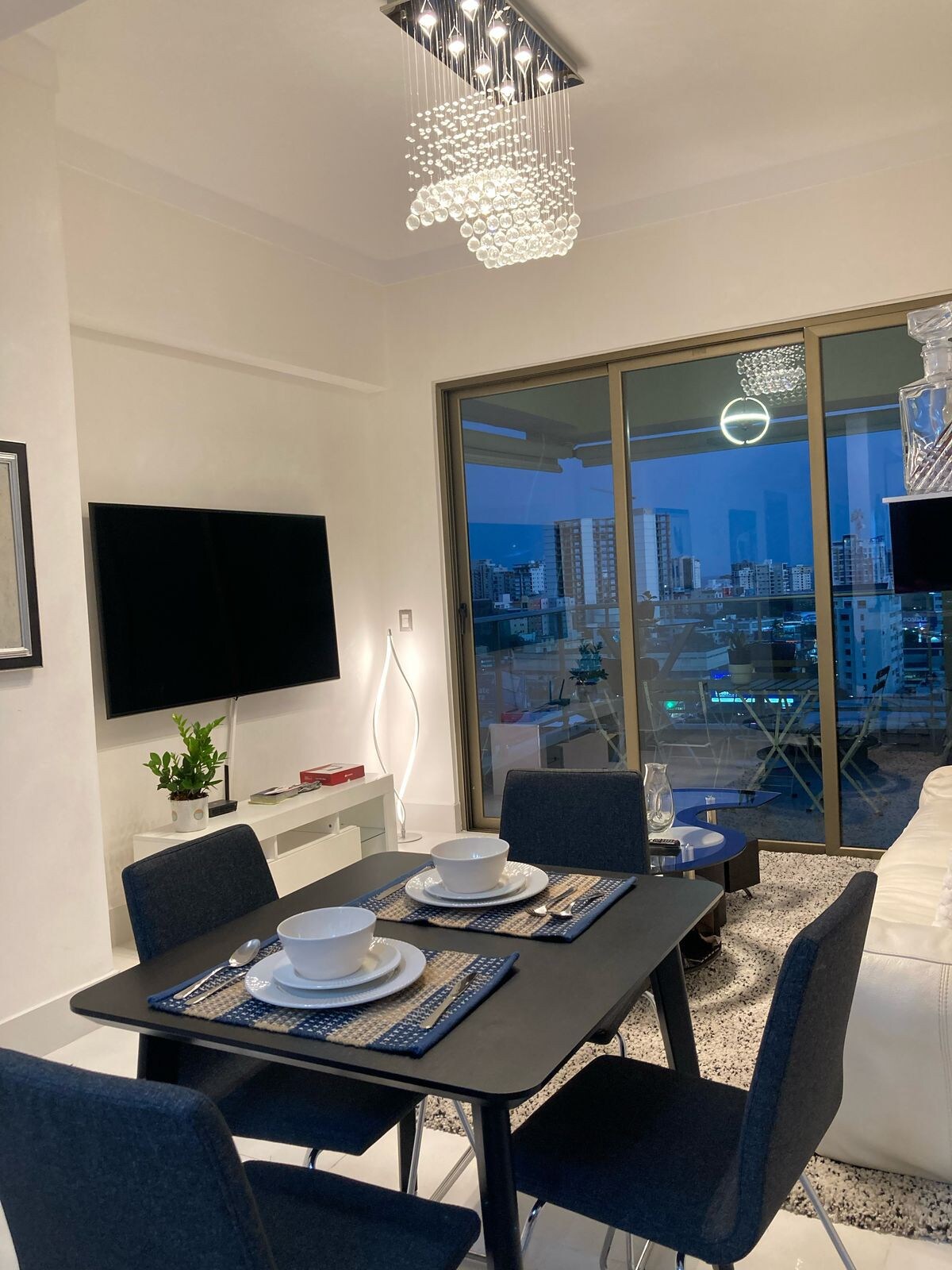 Moderna torre de lujo, ubicado en uno de los lugares más céntrico de la ciudad de Santo Domingo. El apartamento está en un 7 piso, tiene 3 habitación con tv 65 pulgata , baño, sala, cocina, área de lavado, balcón, 2 estacionamientos techados gratuito, seguridad 24H. Sei personas pueden dormir cómodamente, el edificio tiene su propia piscina en el área social ubicada en el 6to piso, gimnasio, terraza social, área infantil, pista de jogging, BBQ y sauna , spa.