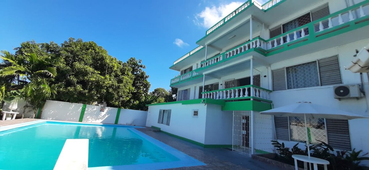 Lig do scíth ag an Villa Donna Inn atá síochánta agus suite go lárnach. Tá an réadmhaoin álainn seo suite go háisiúil laistigh d'achar siúil ó ionaid siopadóireachta agus bialanna. Níos lú ná 10 nóiméad ar shiúl ó Aerfort Idirnáisiúnta Sangster, Ionad Siopadóireachta Whitter Village agus Stráice Hip Infamous de Montego Bay le tránna poiblí agus príobháideacha. Sábháilte agus slán le stáisiún póilíní in aice láimhe. Bain sult as an radharc álainn ar an aigéan ó chompord do sheomra nó lig do scíth ar lá te sa linn snámha lasmuigh!