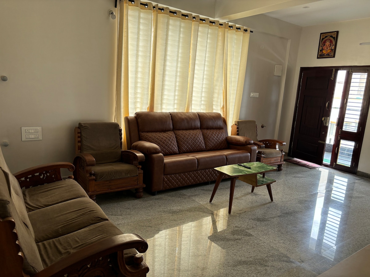 Teach álainn, geal agus fairsing le go leor glaise timpeall. Tá sé suite go h - áisiúil, ar shiúl ó fhuadar agus ó fhuadar nach bhfuil ach achar siúil go dtí an príomhbhóthar ina bhfuil na saoráidí go léir. Siúlóid 10 nóim go dtí stáisiún Metro Mysore agus áirse RR Nagar, 2 nóiméad siúil go dtí teach tábhairne 1522, go dtí an stad bus, siopaí & bialanna in aice láimhe. Tá ár dteach suite in aice le teampaill áille. Fad insiúlta chuig an teampall cáiliúil Rajarajeshwari agus teampall Nimishamba.
