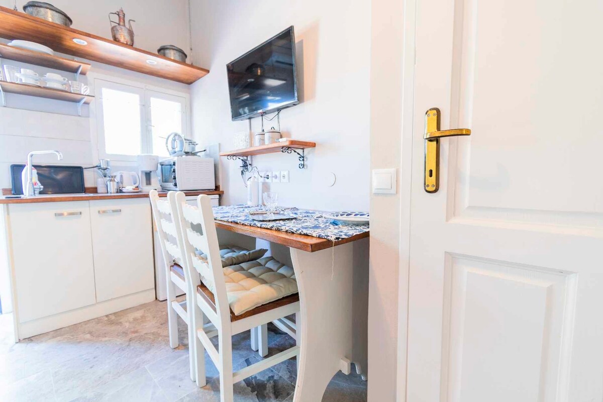 Our apartment is located close to Vourvoulos beach, 5 minutes from Fira center, 8 minutes from airport&15 minutes from Oia(driving distance). It has a bedroom with a small kitchenette (equipped with wash basin,water kettle,coffee machine,an electric grill,microwave&a fridge)& a bathroom. There is an outside area with sea view, a mini playground, a barbeque& parking. It's ideal for couples who like to relax & enjoy the nature. The price doesn't include the government tax of 8 euros per night.