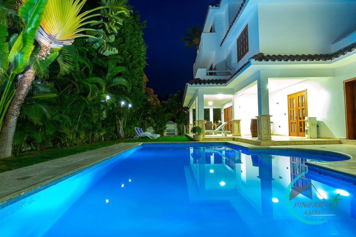 Villa Saoire Só den Scoth! Tá an príobháideacht agus na saoráidí ag an 3 leaba, 4 fholcadán seo in Villa agus tá sé tógtha le haghaidh siamsaíochta. Teilifís i ngach seomra. Bord Linne, slándáil 24 uair an chloig. Bain sult as radhairc áille ón linn snámha éigríche & tobán cuilithe. Le haghaidh eispéireas iontach is é an villa seo é! Gan táille ghlantacháin, Seirbhís maid saor in aisce ar feadh níos mó ná 3 oíche, Níl ach 4 nóiméad go dtí Trá álainn Sosua, Trá Alicia, bialanna/beáir, An Suíomh is Fearr! - dún do chách é!! 5 nóiméad go dtí an t - aerfort agus 15 nóiméad go dtí cúrsa gailf Playa Dorado.