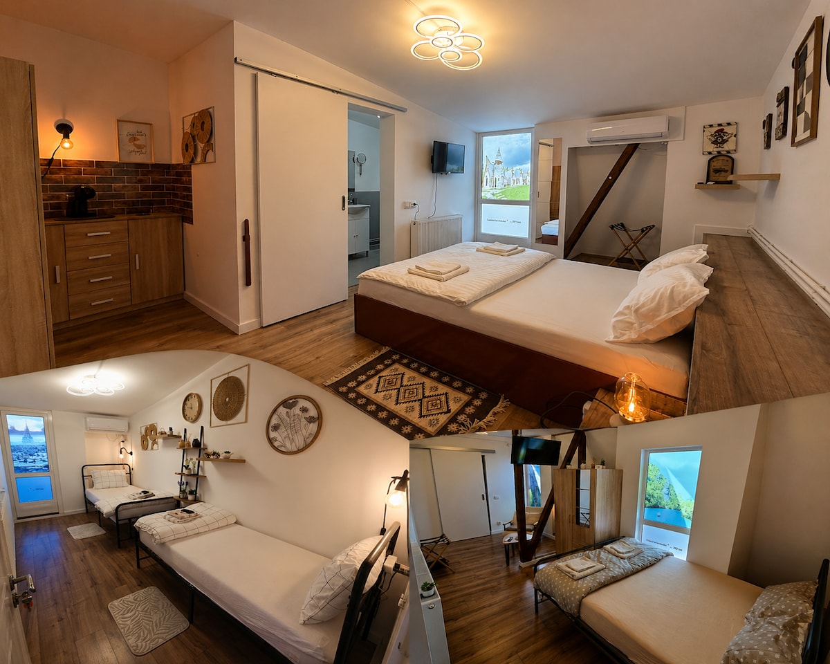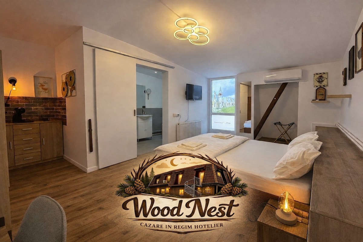 Wood Nest Bragadiru oferă 3 studiouri premium în regim hotelier, aproape de București. Fiecare studio este modern, curat și complet utilat, ideal pentru sejururi scurte sau deplasări business. Locația dispune de bucătărie comună, perfectă pentru confort suplimentar. Beneficiezi de parcare gratuită și transfer aeroport contra cost. Liniște, intimitate și acces rapid către oraș. Alegerea ideală pentru cazare în Bragadiru, fie că ești în tranzit sau în interes de serviciu.