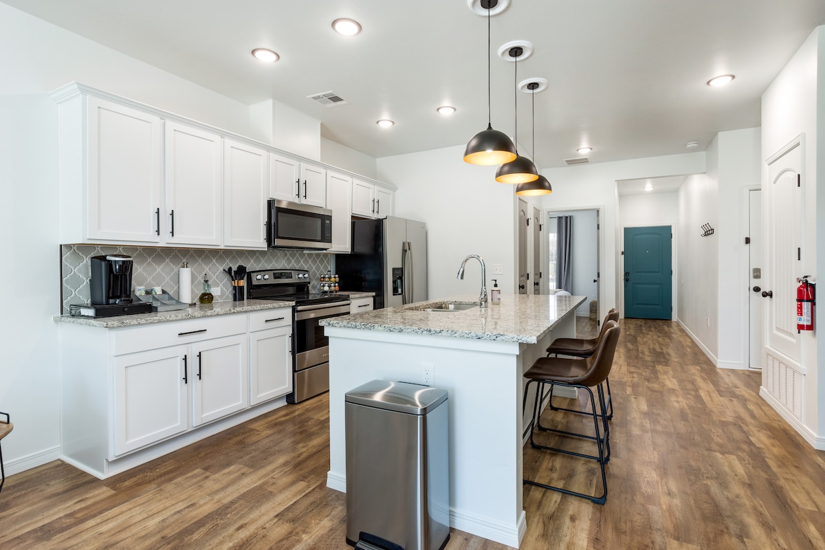 Tá an teach suaimhneach seo neadaithe ag imeall Four Hills Park agus tá 2 sheomra leapa agus 2 sheomra folctha iomlána ann. Sa chistin nuashonraithe agus uasghrádaithe tá Kuerig, oigheann tóstaeir, micreathonnán, cuisneoir fíona, agus meaisín níocháin agus triomadóir is féidir a chur ar fáil. Sa phríomhsheomra leapa tá rochtain phaitió, tobán mór sómasach, agus cithfholcadán céim ar chéim. Tá a rochtain paitió féin sa dara seomra leapa. Féinseiceáil isteach éasca le glas rochtana códaithe.