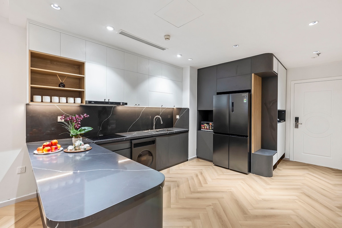 Fan 3 Oíche agus saor in aisce 1 bhealach Aerfort. Déan teagmháil linn go díreach chun socruithe iompair a dhéanamh. Spás suaimhneach lán le solas óna bhfuil radhairc lánléargais ar an gcathair. Gabhann sé radhairc ar spéirlíne na cathrach a spreagann fócas agus machnamh—foirfe don ghairmí uaillmhianach atá ag lorg tearmann galánta, neamhbhrúite i gcroílár na cathrach. Tá an tearmann dhá sheomra leapa seo, atá deartha go cúramach, ina thearmann príobháideach, ina gcomhtháthú fuinnimh nua-aimseartha Hanoj agus suaimhneas síoraí. Do bhunáit ardaithe le haghaidh obair fhiúntach agus athluchtú ciúin.