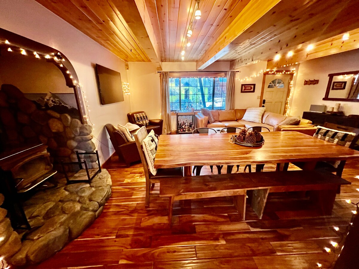 Bain sult as saoire ghearr rómánsúil sa chábán gleoite "Old Tahoe" seo! Radhairc áille locha abound ó díreach faoi gach seomra chomh maith leis an bpaitió, an tobán te agus ar ndóigh ón bpóirse clúdaithe! Tá an teach dorcha seo thart ar 1000 troigh cearnach, ach níor cuireadh aon orlach amháin amú! Tar éis ceithre ghlúin de theaghlach Harris, táimid anois mar mhaoir ghrámhara an chábáin ghalánta seo, “Old Tahoe ”. Tá súil againn go mbainfidh tú taitneamh as agus go dtabharfaidh tú aire dó díreach mar a dhéanaimid! Clibeáil sinn ar Insta @tahoeharrishouse!