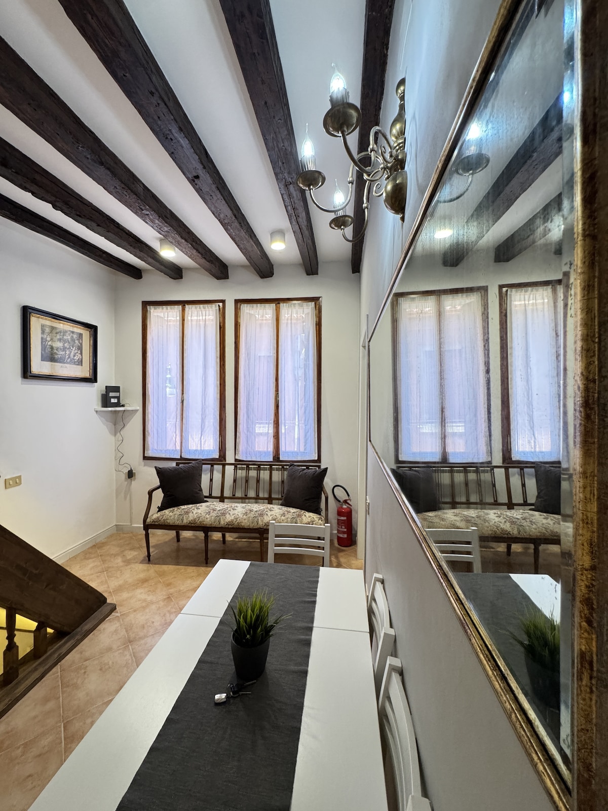 Teach stairiúil ón gcúigiú haois déag atá suite i gcúirt shaintréitheach sa chúigiú haois déag. Tá an áit an - chiúin agus compordach, is féidir teacht air i 5 nóiméad de shiúl na gcos ó chríochfort cairr Piazzale Roma agus 10 nóiméad ón Iarnród. Athchóiríodh go hiomlán é in 2018 agus le feistis dearthóra, tá dhá sheomra leapa ann le leapacha dúbailte, seomra folctha ina bhfuil cithfholcadán fairsing, agus cistin feistithe. Ó na seomraí téann tú isteach sa chlós príobháideach, áit ar féidir leat do scíth a ligean le deoch ag deireadh an lae.