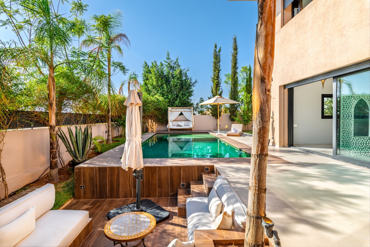 🌴3+ nights: a FREE breakfast & Airport pickup!🌴 🏊 Heated pool (to 28°C), ping-pong & board games. 👩🍳 Daily housekeeping & private cook available. 🚐 Private driver & van available. 👶 Baby-ready: crib, high chair & stroller provided. 🏡 In a quiet residence, 15 min from Marrakech city centre (9 km). 👥 Capacity: 10 guests. 🛏 4 bedrooms (king size), Smart TVs, yoga & prayer mats. 🚿 4.5 baths w/ towels & hair tools. ✨ Welcome to Villa N !✨