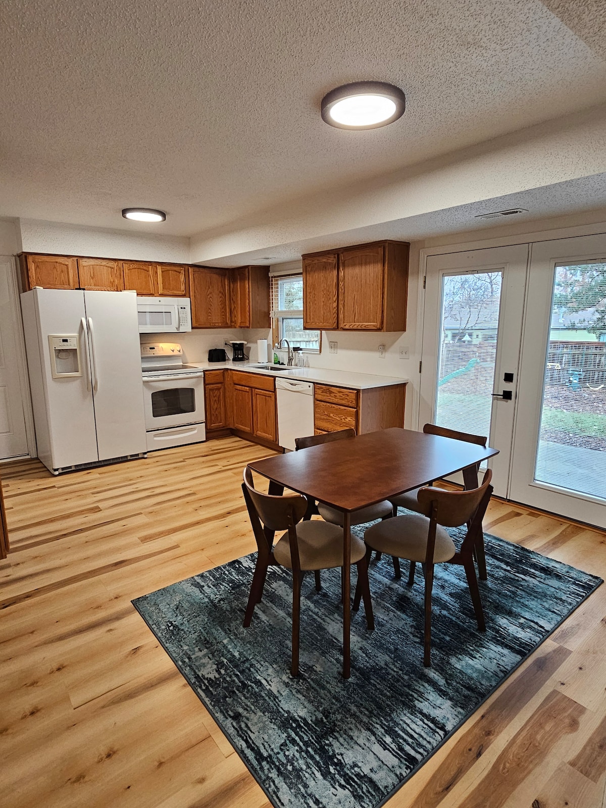Bain sult as leadóg bhoird nó as foosball sa gharáiste atá ceangailte leis an teach. Glac nap sna leapacha compordacha nó lig do scíth ar an rannóg bhog chun féachaint ar an teilifís. Táimid suite 7 nóiméad ó Walmart, Sprouts nó Dillons agus 11 nóiméad ó KU. Tá go leor bialanna suite in aice láimhe. Is féidir libh ithe ag an mbord picnice sa chlós cúil atá clóisithe, nó burger a dhéantar ar an ngríoscán leictreach a ithe. Ar thráthnóna fuara is féidir libh an teallach gáis a chasadh air chun go mbeidh sibh níos teo fós. Tá spás do cheithre charr ar an gcabhsa agus tá spás ar an tsráid freisin.