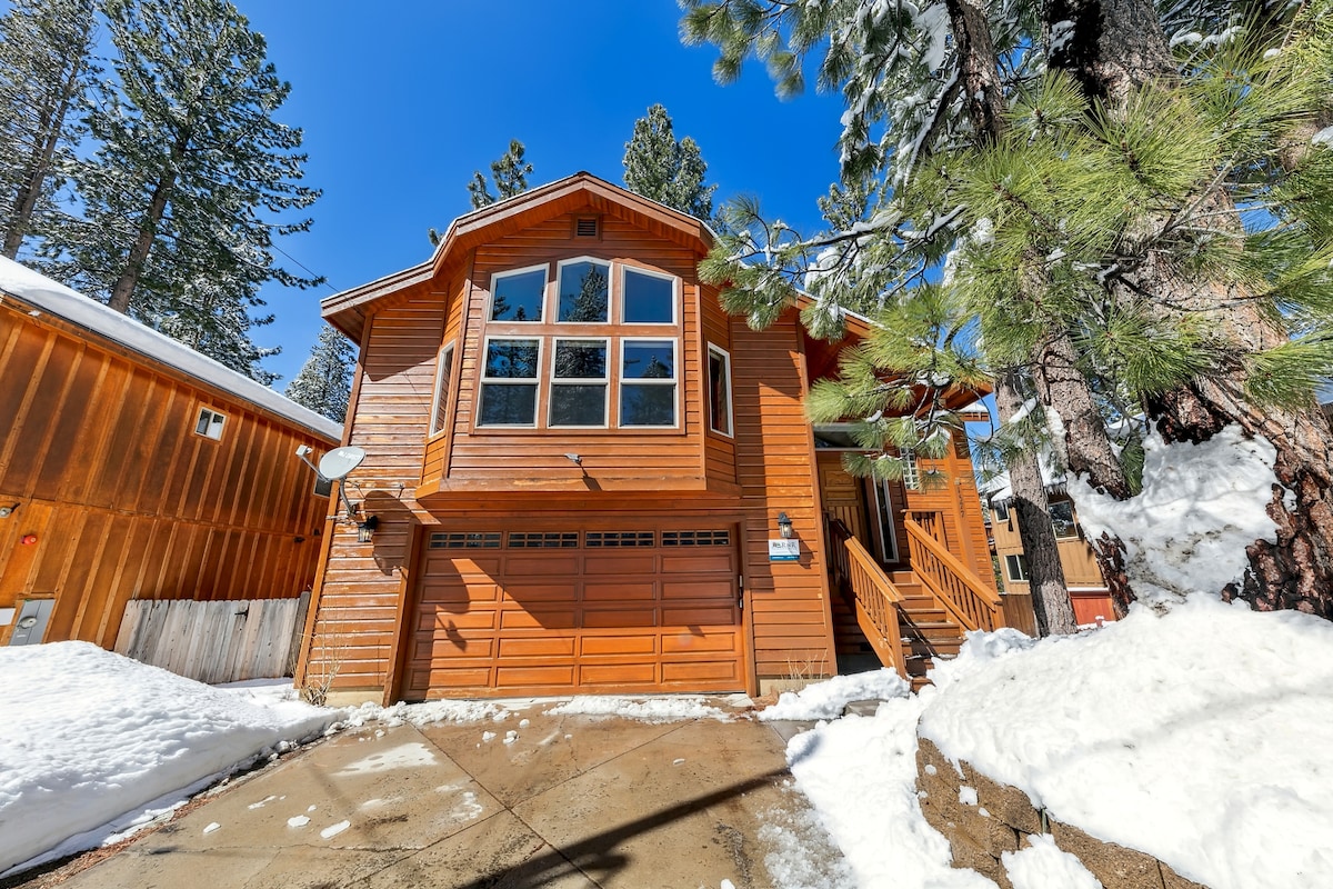 Teach A-fhráma galánta cluthar ina bhfuil 3 sheomra leapa + lochta cluichí 6 nóiméad go Heavenly. Tá an teach athchóirithe agus nuashonraithe go blasta le troscán nua-aimseartha agus tá an chistin feistithe go maith. IN AICE LE Bijou Park, áit a bhfuil an-tóir uirthi go háitiúil, ina bhfuil 5 acra de chosán rothar, raon BMX, cúrsa gailf diosca, clós súgartha agus eitpheil ghainimh. Timpeallaithe ag móinéir agus rochtain thapa ar chosáin fánaíochta agus rothaíochta. In aice le Galfchúrsa Bijou & turas rothar éasca go Loch Tahoe & go leor roghanna itheacháin. Tointeálaí Lakelink saor in aisce go Heavenly & South Shore!