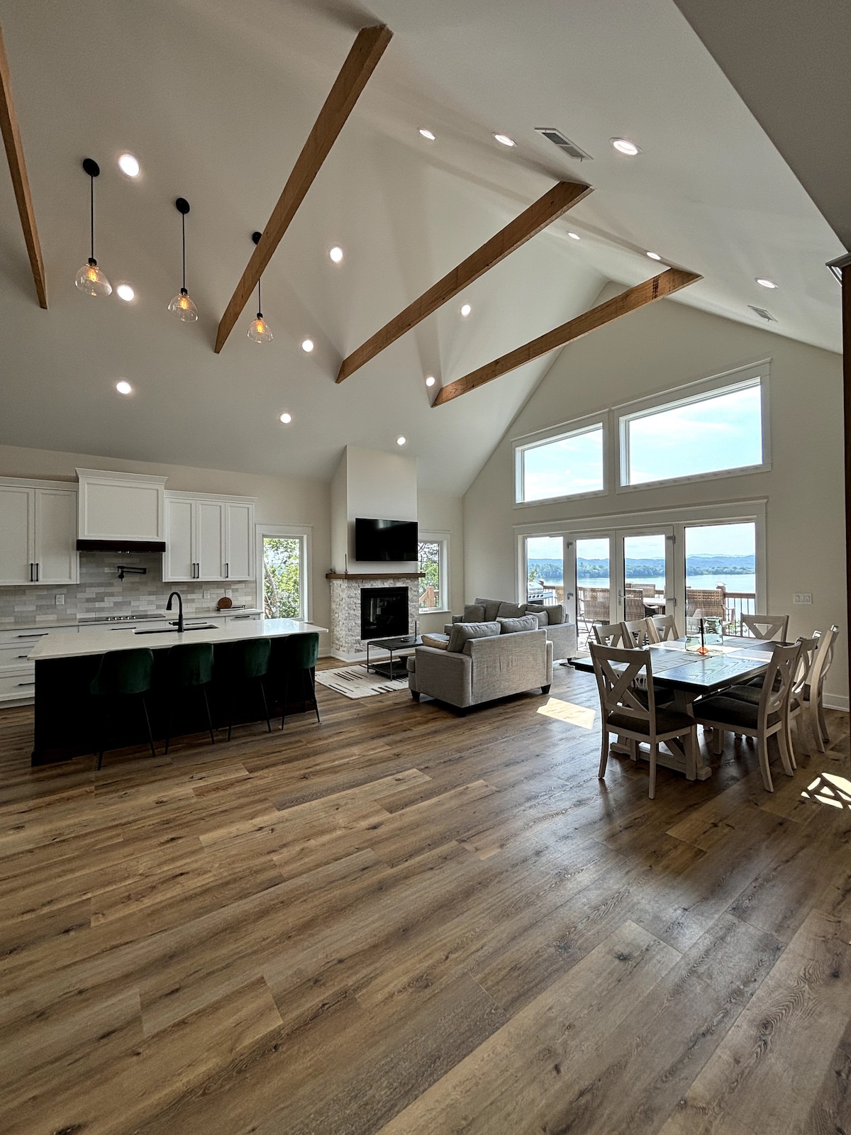 Fáilte chuig do shaoire ghearr bhrionglóideach! Tugann an teach sómasach cois locha seo, atá suite ar bhruacha Loch Dúghlais in Dandridge, TN, an tearmann deiridh do theaghlaigh agus do ghrúpaí. Le 5 sheomra leapa fairsinge, 5 sheomra folctha galánta, agus 2 sheomra suí mhóra, tá go leor spáis ann do gach duine chun a scíth a ligean agus taitneamh a bhaint as. Dúisigh le radhairc iontacha ar an loch, bain sult as do dhuga príobháideach, agus faigh rochtain ar an bpobal eisiach Cuir d'fhanacht in áirithe inniu! Tabhair faoi deara: is taiscumar é an loch seo, tá leibhéil an uisce níos ísle le linn an gheimhridh.