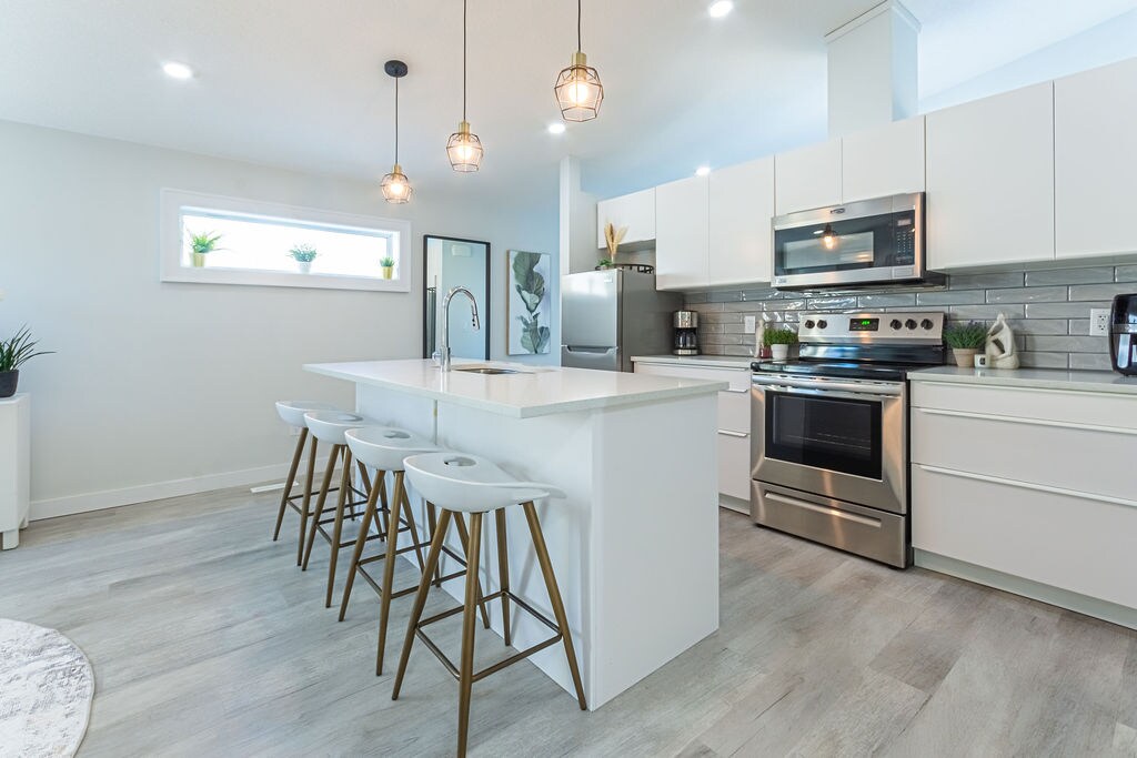 Professionally managed by We Host Inc. -PRIME LOCATION: Downtown Edmonton, steps from Rogers Place, YMCA & U of A -Newly renovated luxury loft with modern furnishings -2 King bedrooms | Patio -Fully equipped kitchen with granite counters & stainless steel appliances -Air conditioning & in-unit laundry -Private garage parking for 1 vehicle (fits regular car) -Close to top restaurants, cafes & summer farmers market