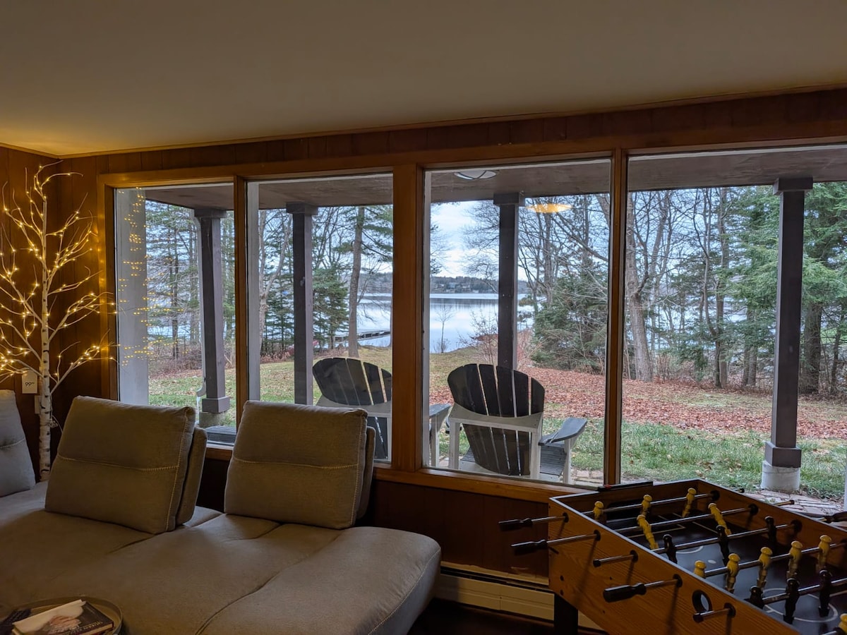 Ag dul ar camchuairt ar na háiteanna is fearr in Albain Nua? Beidh tú suite go lárnach! 30 nóiméad go dtí imeall uisce Halifax, 30 nóiméad go Peggy's Cove agus Mahone Bay, 1 uair an chloig go Lunenburg agus Mahone Bay, agus díreach os cionn uair an chloig go dtí Bá Fundy. Níl uait ach saoire ghearr theolaí? Beidh rochtain agat ar imeall an locha ar dhuga comhroinnte, chomh maith le do dheic phríobháideach féin, spás oifige, bréagáin do pháistí, chomh maith le tiomántáin ghearra chuig an aigéan agus cosáin fánaíochta. Agus níl tú ach nóiméad chuig siopaí grósaera, mearbhia agus rochtain ar mhórbhealaí.