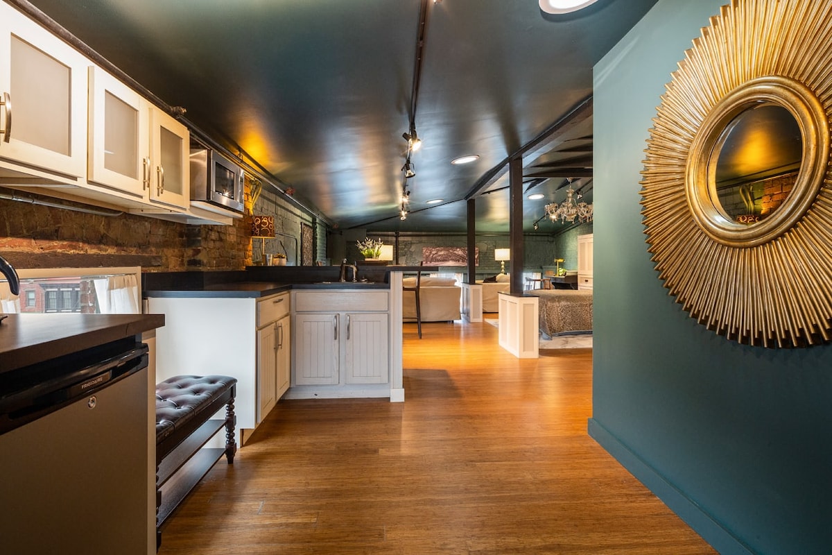 Cuir d'fhanacht in áirithe ag an Whiskey Row Lofts stairiúil i gcroílár cheantar cultúrtha, tráchtála agus siamsaíochta Louisville! Faigh blaiseadh de na gnéithe ailtireachta uathúla de cheann d'fhoirgnimh stairiúla suaitheanta na cathrach, lena n - áirítear 12 fhuinneog, ballaí brící nochta, agus múnlú bunaidh. Beidh tú ar bharr Rae Whiskey, lár na turasóireachta bourbon, agus díreach blocanna ó Museum Row agus ionaid imeachtaí móra Louisville, amhail an KFC Yum! Ionad agus an tIonad Comhdhála Idirnáisiúnta.