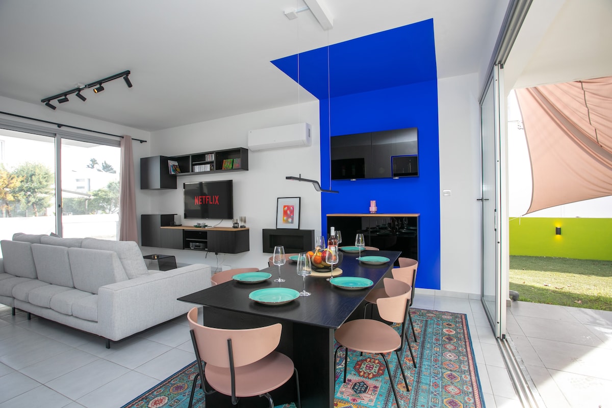 Teach álainn nua - aimseartha cois trá in Pervolia, Larnaka, an Chipir. Le troscán fíorálainn, cumascann an taobh istigh galántacht chomhaimseartha le compord. Is léiriú ar stíl é gach seomra, le décor chic agus sonraí tuisceanacha. Tosaíonn maidineacha le héirí gréine iontacha thar an bhfarraige, le feiceáil ón bpaitió teolaí lasmuigh, agus bíonn sunsets iontacha ar an trá ag tráthnóna. Foirfe do thearmann saoire suaimhneach, cuimsíonn an villa seo só gann agus áilleacht nádúrtha a shuíomh cósta.
