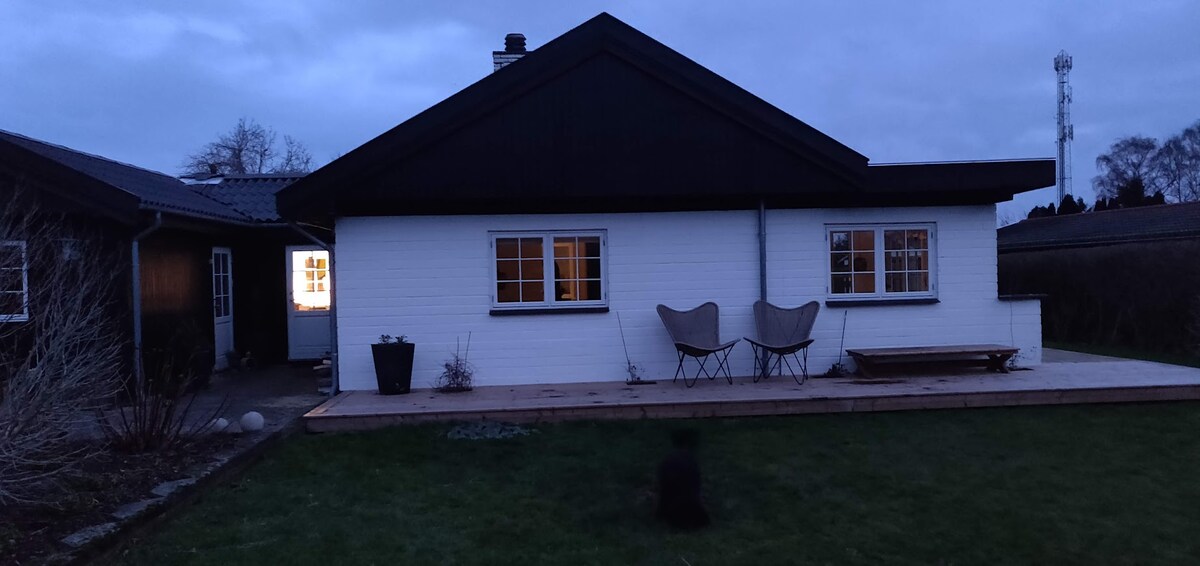 Teachín gleoite nua - aimseartha Nordach ar bhóthar príobháideach ina bhfuil ardán grianmhar, gríoscán agus áit tine chnámh. Dhá sheomra leapa (4 dhuine), cistin lánfheistithe, Teilifís Chliste, agus seomra folctha athchóirithe. Iarscríbhinn le leaba thoilg agus leithreas (úsáid an tsamhraidh amháin). Línéadach tí, tuáillí agus bunrudaí curtha ar fáil. 200m ó thrá álainn. Caiféanna, bialanna agus ollmhargadh in aice láimhe. In aice le bailte Hornbæk agus Gilleleje le haghaidh siopadóireachta agus bia. In aice le Músaem Tegner le haghaidh eispéiris chultúrtha uathúla a mheascann ealaín agus an dúlra.