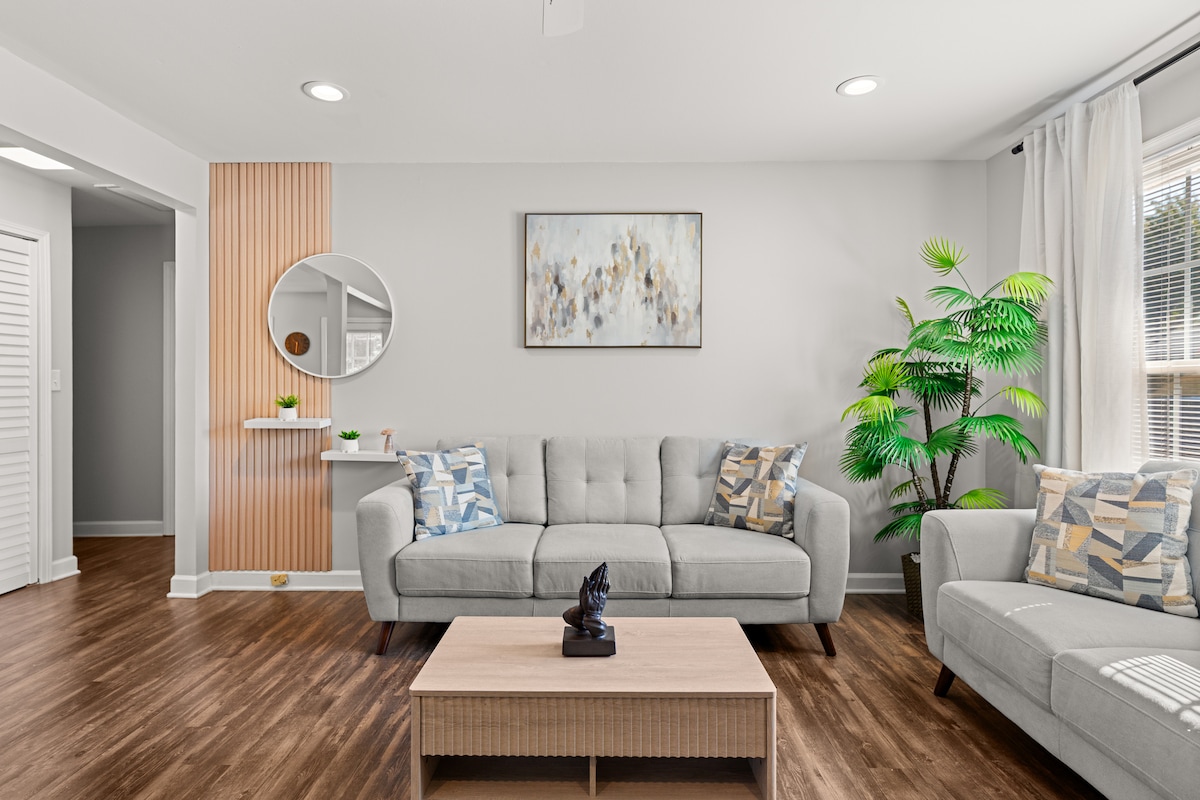 Deacair an luach iontach seo a shárú! Suite ar shráid chiúin 5 nóiméad ó lár an bhaile, tá an réadmhaoin 2 leaba/1 leaba seo foirfe do do chuairt ar Greenville. Tá leaba bhanríona agus neart spás do vardrús le crochadáin i ngach seomra leapa. Amach ar ais, tá deic mhór ann chun do scíth a ligean, agus tá clós fálaithe ag an réadmhaoin a bheadh oiriúnach do do chara aisteach. Tá an réadmhaoin seo nóiméad ó ospidéil & idirstad 85. Ideal do thaistealaithe oibre, nó do chuairteoirí fiosracha go simplí. Tá cabhsa ann le haghaidh páirceála.