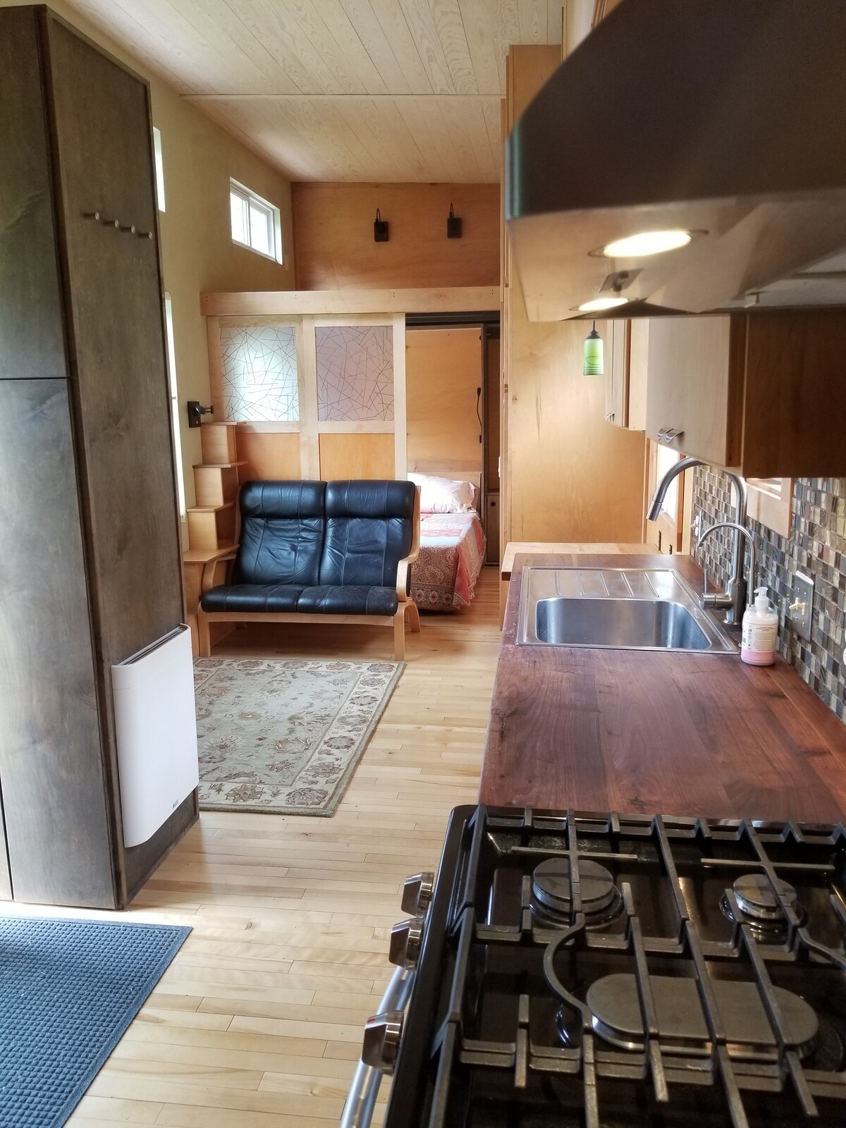 Welcome to the Four Corners Tiny House—a handcrafted basecamp just outside Cortez with big sky views. Inside is simple and functional. The kitchen has a sink, microwave, hot plate, and essentials. A loft bed with a new mattress and a futon for extra sleeping space. The bathroom has a full-size shower with on-demand hot water. Water pressure may be lighter at first but evens out and works ok. Step outside to your private deck, fire pit, and Adirondack chairs,perfect for coffee, fires, and views.