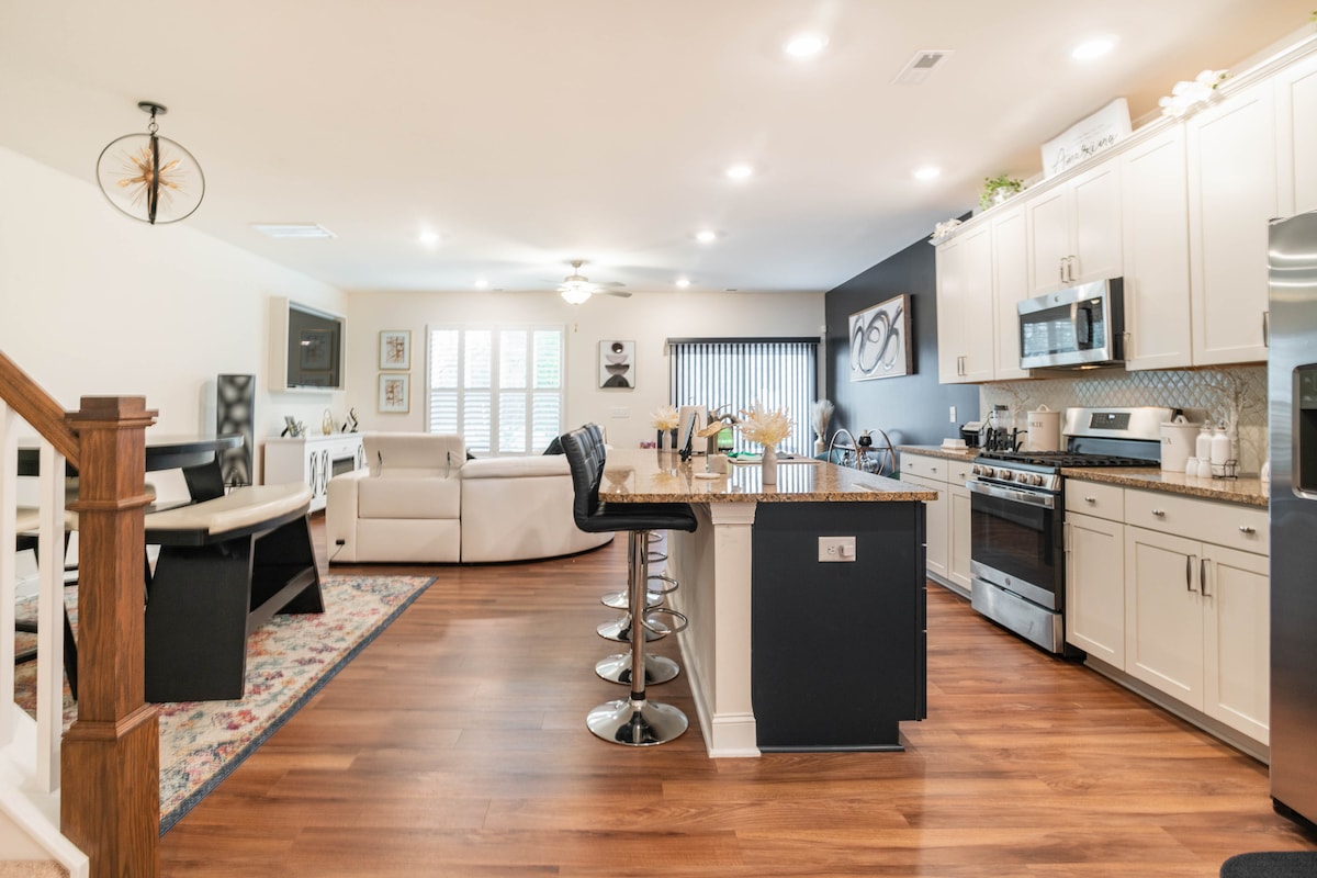 Déan cuimhní cinn dodhearmadta sa teach fairsing seo atá deartha go hálainn duitse + 9 n - aoi! Foirfe do theacht le chéile teaghlaigh, imeachtaí spóirt, & ócáidí speisialta. Lonnaithe i gcroílár Downtown Durham, níl ach 4 nóiméad ó Duke, staidiam Bulls, DPAC, & Tobac Trail. Teolaí timpeall an phoill dóiteáin, bain sult as beárbaiciú, nó lig do scíth le ceirníní grán rósta agus vinile úra. Scoir i leapacha sómasacha + braillíní & téigh go dtí an beár caife gourmet san AM. Rochtain saor in aisce ar ionad aclaíochta in aice láimhe w/linn snámha. Baineann 4 thocht aeir agus luchtaire feithiclí leictreacha leas as.