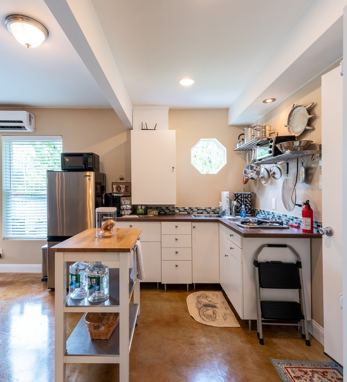 Neadaithe i gcroílár Frenchtown NJ, gheobhaidh tú draíocht i bhfolach i ngairdíní méithe River Witch Cottage. • Cuir tú féin ar ais i leaba bhanríona shómasach • Ullmhaigh béile simplí sa chistin atá feistithe go hiomlán • Cothaigh tú féin i ndraíocht áit itheacháin phearsanta • Athlíneáil i gcompord teolaí in aice le teallach gáis álainn • Athnuaigh i scairdeanna an tobáin jacuzzi, ar maos faoi sholas nádúrtha na spéirléasanna • Caife maidine nó fíon tráthnóna i suíomh suaimhneach an phaitió phríobháidigh lasmuigh