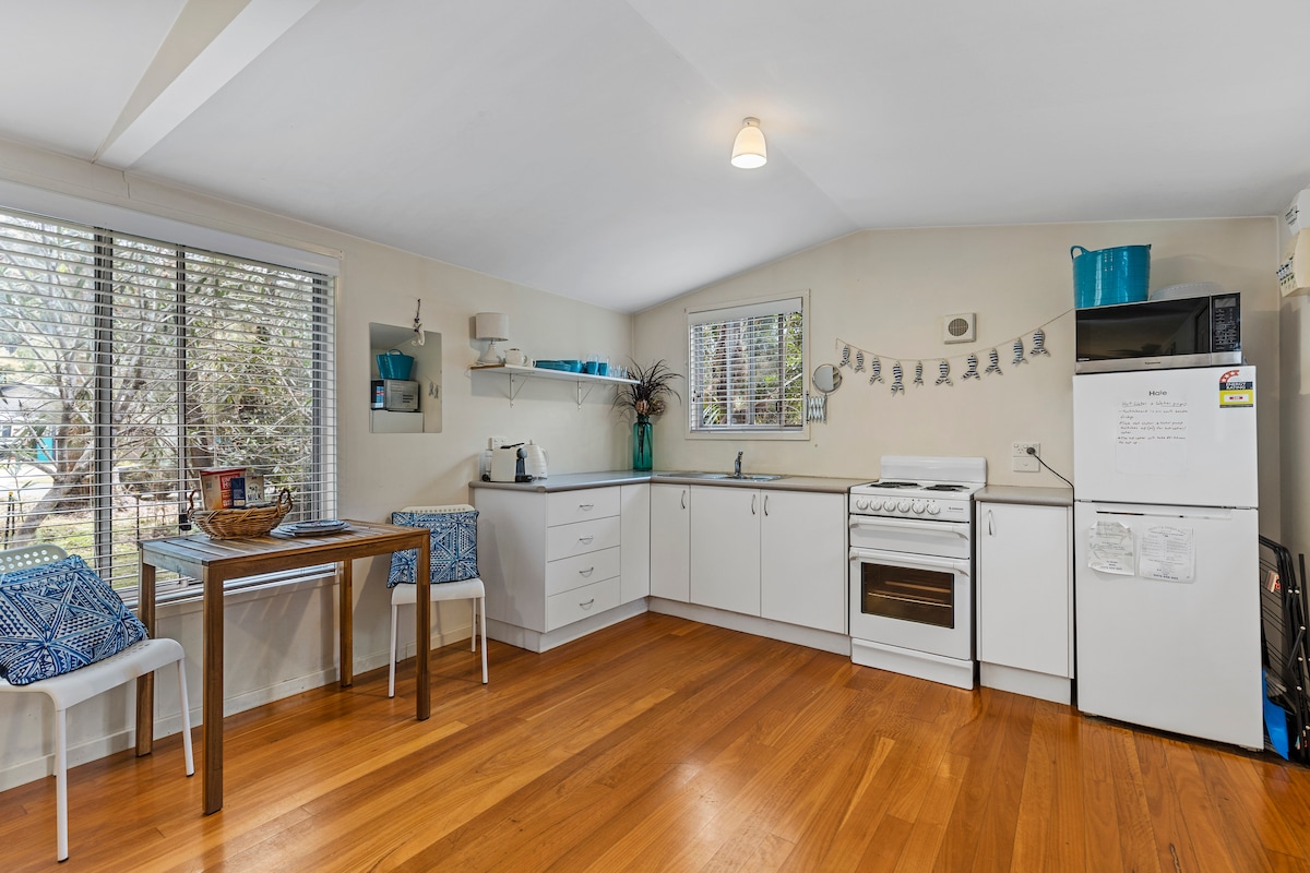 Tá an teachín trá seo atá feistithe go hiomlán neadaithe i suíomh álainn cosanta, príobháideach & ciúin nach bhfuil ach 200m ó Shelly Beach. Tá Páirc Náisiúnta Murramarang díreach béal dorais ag tabhairt fiadhúlra chuig do dhoras céim ar chéim! Iascaireacht, tumadóireacht, snámh, surfáil, siúl, scíth a ligean ar cheann de na tránna gan mhilleadh, nó díreach ag an teachín, tá rud éigin ann do gach duine! Níl ann ach tiomáint 5 nóiméad go Durras Thuaidh, 10 nóiméad go dtí Trá Pebbly & 20 nóiméad go Batemans Bay. Tabhair faoi deara nach gcuirtear línéadach & tuáillí ar fáil.