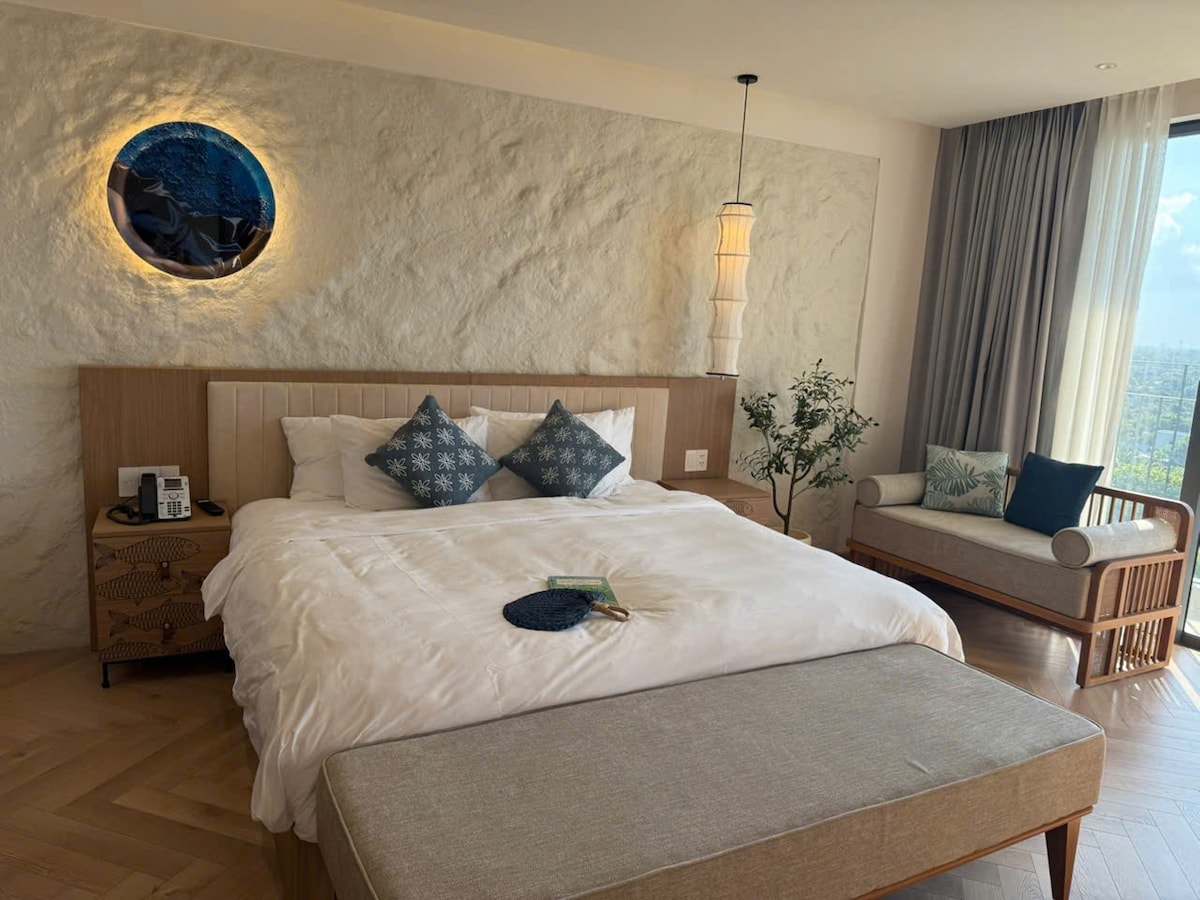 Tá 1 leaba rí nó leaba chúplach sa stiúideo (ar d'iarratas) le radharc na farraige. D'fhéadfá mo sheomra (an ceann ar an liostú) nó seomra stiúideo eile a fháil. Tá an seomra 35 méadar cearnach. Tá 3 linn snámha, trá phríobháideach, bialanna, Spa, ceantar na bpáistí, srl. Tá rochtain agat ar na linnte snámha ach ní féidir leat an seomra aclaíochta a úsáid. Más mian leat na tuáillí a úsáid ag na linnte, caithfidh tú 80,000 vnd sa bhreis a íoc. Más mian leat na leapacha gréine a úsáid ag an trá, b'fhéidir go mbeadh ort rud éigin (deoch/mias,...) a cheannach ansin.