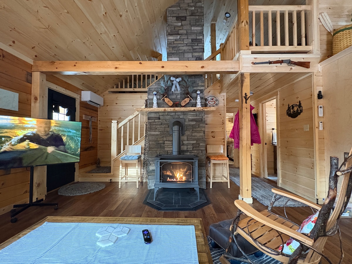 Lonnaithe míle ó Downtown Inlet i gcroílár Shléibhte Adirondack. Táimid ag siúl achar chuig galfchúrsa álainn, siopaí bronntanais, mionghalf, seastán uachtair reoite, caiféanna agus bialanna. Fánaíocht, stuáil agus gníomhaíochtaí lasmuigh go mór! Cuirimid do thaitneamh ar fáil: Duga príobháideach Canú nó 2 chadhc agus seaicéid tarrthála Poll dóiteáin lasmuigh - adhmad dóiteáin ar fáil le ceannach in aice láimhe. Gríoscán gáis Suíocháin amuigh faoin aer ar an deic Balcóin an dara hurlár Gach línéadach tí san áireamh.