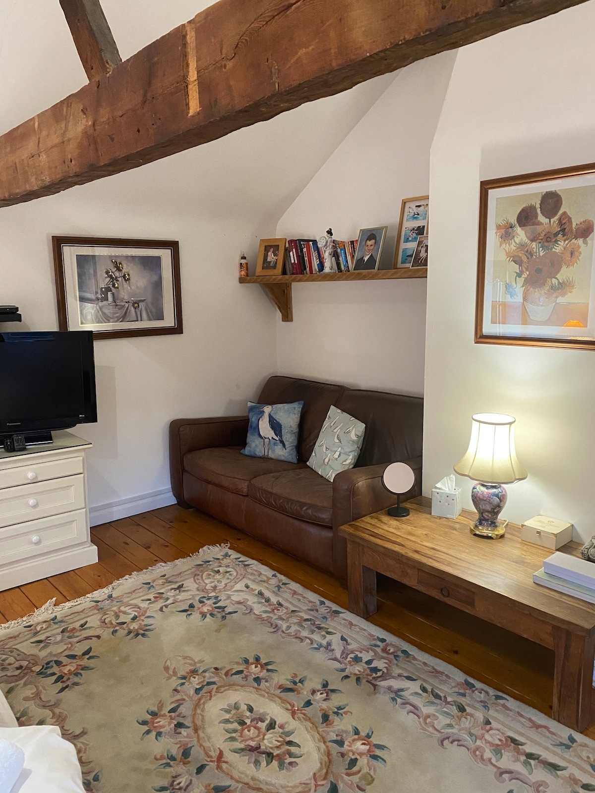 Suite i gceantar an - chiúin síochánta, tá an spás beag dlúth seo (stiúideo) mar chuid de theachín buaiceach 120 bliain d'aois atá timpeallaithe ag glaise agus siúlóidí áille, atá foirfe do shaoire chiúin. Tá Sky TV agus NETFLIX ann, tá a bhealach isteach féin, gairdín clós agus cabhsa. Níl stáisiún Hertford Thuaidh ach 5 nóiméad ar shiúl a théann go Finsbury Park i 30 nóim nó i Moorgate in 55. Is baile beag álainn é Hertford ina bhfuil an oiread sin staire agus go leor tithe tábhairne agus bialanna deasa