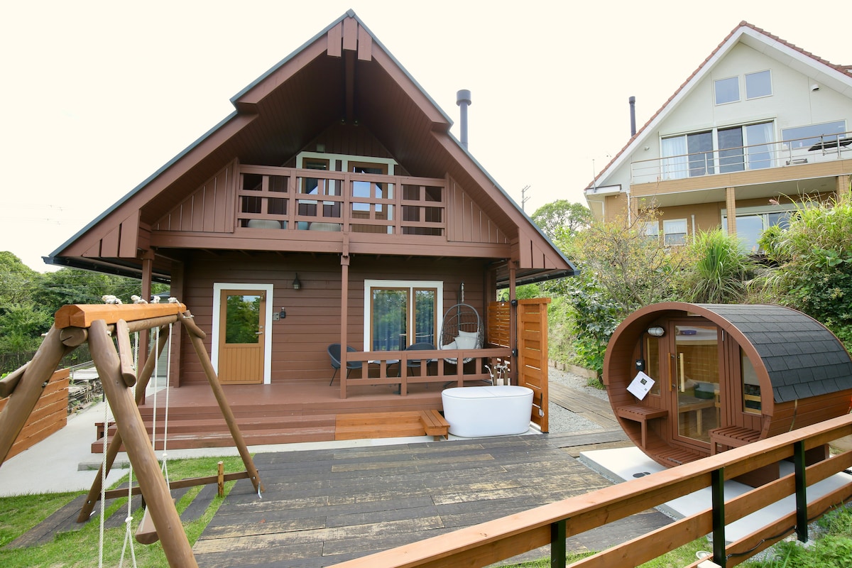 ログハウスで【サウナ・Beárbaiciú】 『ニジゲンノモリ』徒歩 5分・橋と観覧車 &神戸の夜景を望む癒しの空間