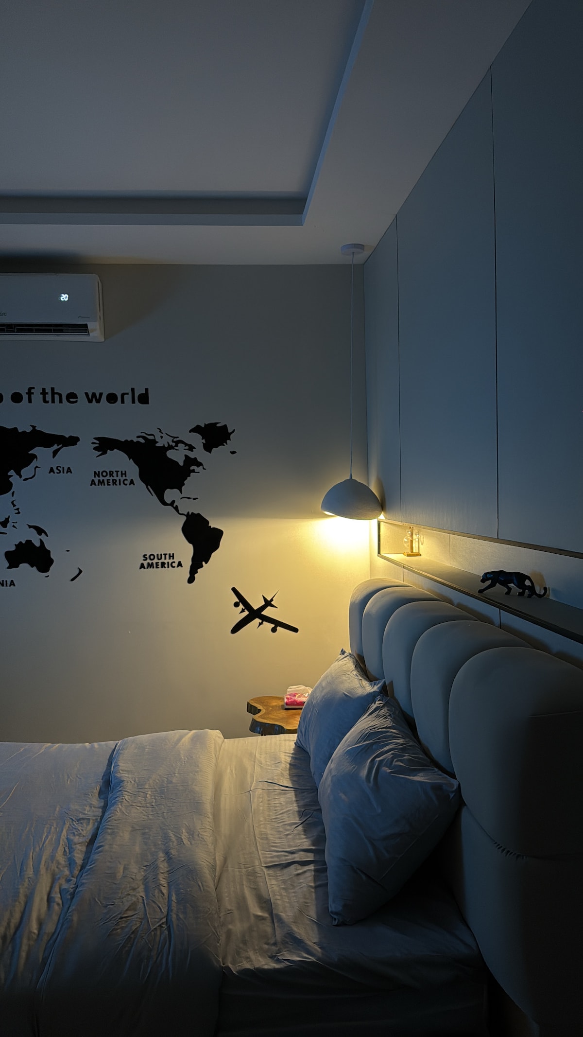 Fáilte Is árasán é an áit ina bhfuil seomra (leaba rí) + 2 sheomra folctha + halla faoi dhíon + cistin atá oscailte don halla bia. Tá na seirbhísí seo a leanas feistithe san áit: féinseiceáil isteach/Wi - Fi 5G/tuáillí glana/iarann/scáileán teilifíse 65 orlach/páirceáil phríobháideach saor in aisce san íoslach/ardaitheoir/láithreacht oibrí chun cabhrú leat i gcás fadhb ar bith. Is é an ghné is sainiúla den áit ná go bhfuil sé suite i gcroílár Al - Khobar, 6 nóiméad siúil ón Al - Khobar Corniche, go sonrach ag crosbhealach na sráideanna is mó éilimh (Sráid an Rí Salman agus Sráid an Phrionsa Turki), atá lán le bialanna, caiféanna agus siopaí