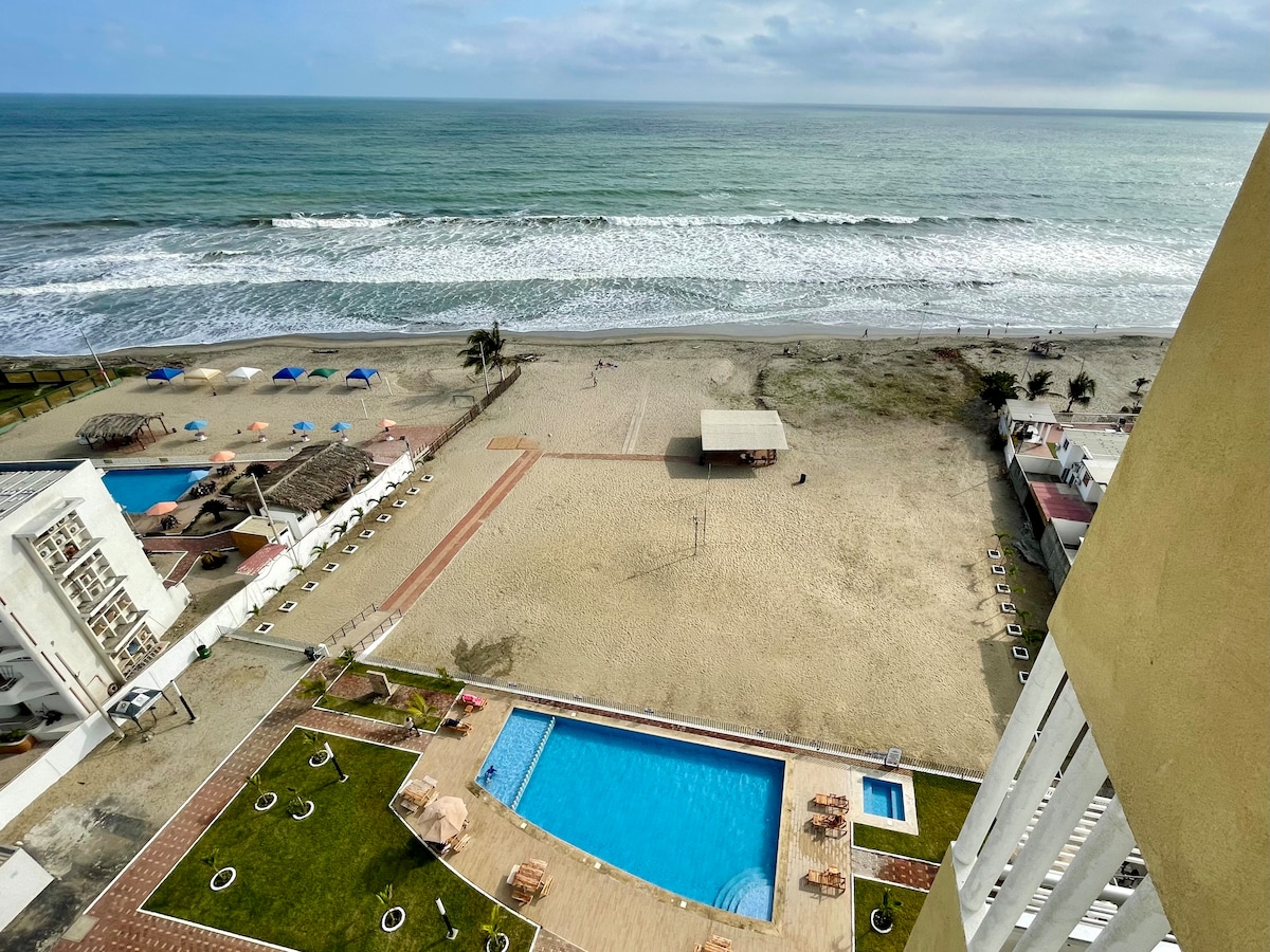 Suíomh den scoth, os comhair thrá Chipipe, an earnáil is eisiach agus is sábháilte in Salinas. Tá idirlíon neamhtheoranta ann, A/C Roinnte i ngach seomra agus Seomra. Uisce te, 2 SmartTV agus páirceáil laistigh (1 Feithicil). Ón mbalcóin is féidir leat a bheith buíoch as an bhFarraige agus as solas na gréine álainn. Tá 2 Ardaitheoir san fhoirgneamh a oibríonn 24/7 fiú má théann an chumhacht amach. Tá rochtain ar: Piscinas, Jacuzzi, Sauna, Vapor, Gym, Billiard agus Ping Pong san áireamh. An féidir scáth fearthainne agus cathaoireacha a iarraidh (faoi réir infhaighteachta)