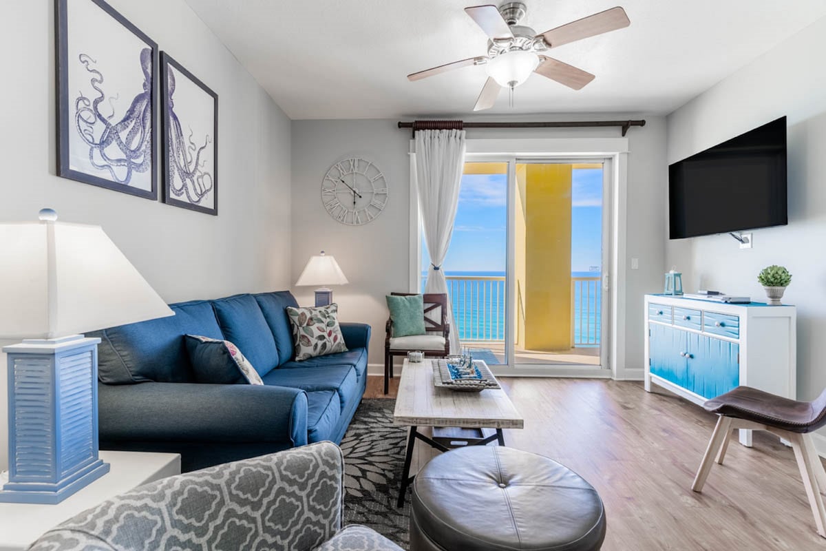 Tá an t - aonad 1 sheomra leapa seo atá athmhúnlaithe go hiomlán ag Edgewater neamhchosúil le haon cheann eile san ionad saoire. Tá obair bhearrtha shaincheaptha ann amhail bearna nicile agus ballaí boird agus batten, teilifíseáin mhóra chliste, cistin atá nuashonraithe go hiomlán le fearais chruach dhosmálta agus maisiúchán cósta monacrómach nua - aimseartha. Éalaigh go dtí an ósais nuashonraithe seo ag príomh - ionad saoire Panama City Beach ina bhfuil na saoráidí is mó agus is fearr ar an trá. Tá an t - aonad seo go díreach ar Mhurascaill Mheiriceá agus ar urlár íseal (3), rud a fhágann go bhfuil sé oiriúnach do do chéad laethanta saoire eile.