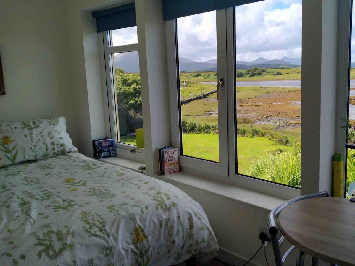 Cábán fairsing le radhairc áille ar fud an uisce go dtí na cnoic Lonnaithe i gceantar ciúin. In aice le gach saoráid,níl ach 7 míle ón droichead Spás príobháideach le páirceáil. I measc na soláthairtí bricfeasta tá,uibheacha, cáis, arbhair, torthaí, sú, arán, im, marmalade, tae, caife a róstadh go háitiúil, bainne agus cácaí coirce Tabhair faoi deara, tá léarscáileanna google mícheart don 100 méadar deireanach. Ag bun an ghleanna cas ar chlé (níl sé ceart mar a ordaítear) Ansin ar dtús ar dheis 30m i ndiaidh an chomhartha Ardcana Páirceáil 15 mhéadar síos ar thaobh na láimhe clé