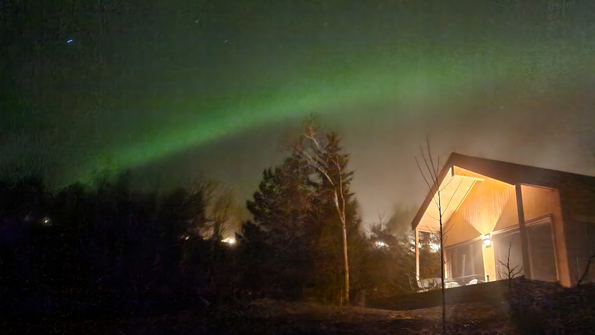 Cábán uathúil chun tosaigh ar an bhfarraige. An - nua - aimseartha agus lánfheistithe. Radharc iontach thar an fjord. Tá an cábán suite 10 -15 nóiméad lasmuigh de lár na cathrach, le himeacht bus gach uair an chloig. Stad bus 1 nóiméad ar shiúl. Tá an cábán 28 m2 mór agus tá sé ar fáil do suas le beirt. Suas staighre mezzanine le leaba a bhfuil rochtain ag dréimire uirthi agus tolg codlata compordach thíos. Páirceáil saor in aisce cois bóthair agus gan ach 1 nóiméad siúil síos cnoc beag chuig an teach. Braitheann an costas breise ar an jacuzzi le húsáid, ar cé mhéad lá. Cosc ar thobac agus gan aon chóisirí.