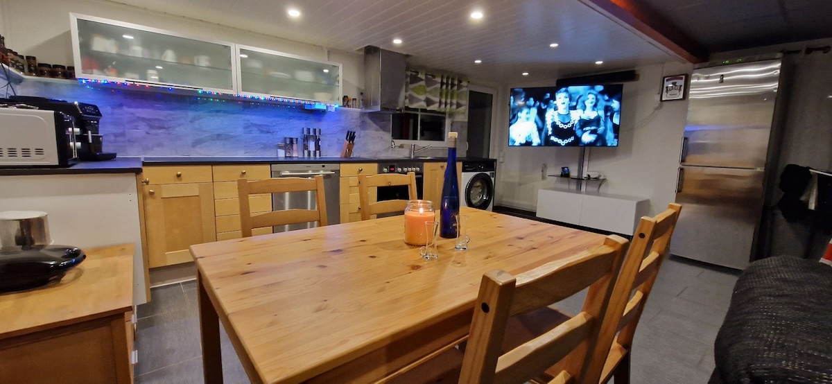 Teach nua-athchóirithe le dhá theachín bheaga agus foirgneamh scoite ar leithligh le hardán ar leith, tobán te mór agus seomra allais do 8-10 duine, gríoscán gáis, le haghaidh cóisir nó teacht le chéile le cairde nó le teaghlach. Tá suíocháin sa phríomhchábán do 8 nduine ina bhfuil spás do 2 dhuine fásta agus 2 pháiste ar cheann de na foirgnimh sheachtracha agus tá spás do 2 dhuine fásta sa cheann eile! Tá an leithreas ina bhfuil dhá báisín níocháin agus cithfholcadáin ar leithligh ón teach agus tá sé ar fáil do gach duine. Is féidir táille a ghearradh ar charr leictreach ag an teach ba chóir go n - íocfadh sé seo anseo direckt