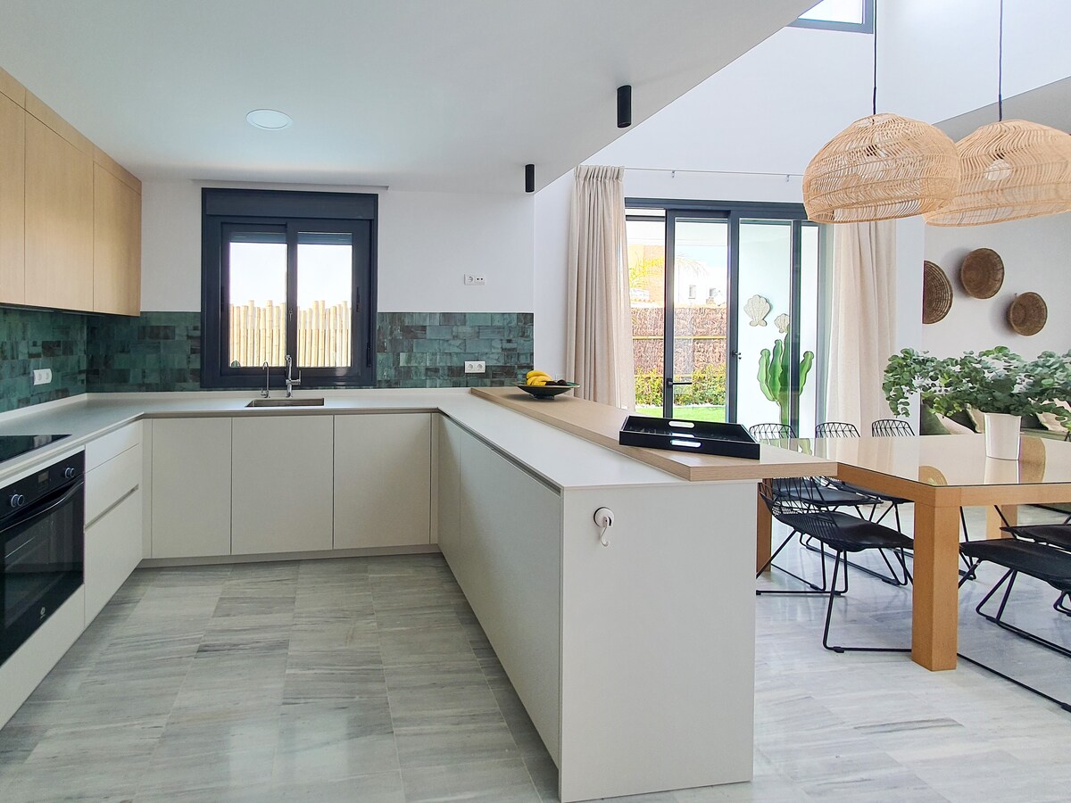 Is teach nua - aimseartha Andalúiseach é Villa Mas Tranquila a chuireann isteach ar mhaireachtáil sómasach. Chríochnaíomar athchóiriú iomlán le déanaí chun cónaí ionainn féin, mar sin breithníodh gach mionsonra go cúramach chun an compord agus an scíth is fearr a fháil. Tá Villa Mas Tranquila faoi thiomáint ag fuinneamh na gréine. 150m ó thrá íocónach Fuente Del Gallo, is féidir taitneamh a bhaint as radhairc iontacha ar an bhfarraige ón bpríomhsheomra leapa agus ón ardán uachtarach. Breise breise: Linn snámha théite go 26 -28 céim Celsius (táille bhreise 40 Euro/lá).