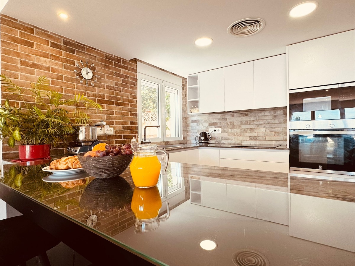 Fáilte go El Limonar, villa iontach 3 sheomra leapa in Torreblanca, Fuengirola. Tá radhairc iontacha, linn snámha phríobháideach, agus taobh istigh gleoite nua - aimseartha le feiceáil sa tearmann sómasach seo. Le dhá sheomra leapa en - suite, cistin lánfheistithe, agus áiteanna maireachtála fairsinge folctha i solas nádúrtha, tá sé foirfe le haghaidh scíthe. Bain sult as bia alfresco ar an ardán, díreach 5 nóiméad sa charr ó thránna Fuengirola nó siúlóid ghearr go stáisiún traenach Torreblanca. Faigh blaiseadh de ghalántacht agus d'áisiúlacht ar an Costa del Sol.
