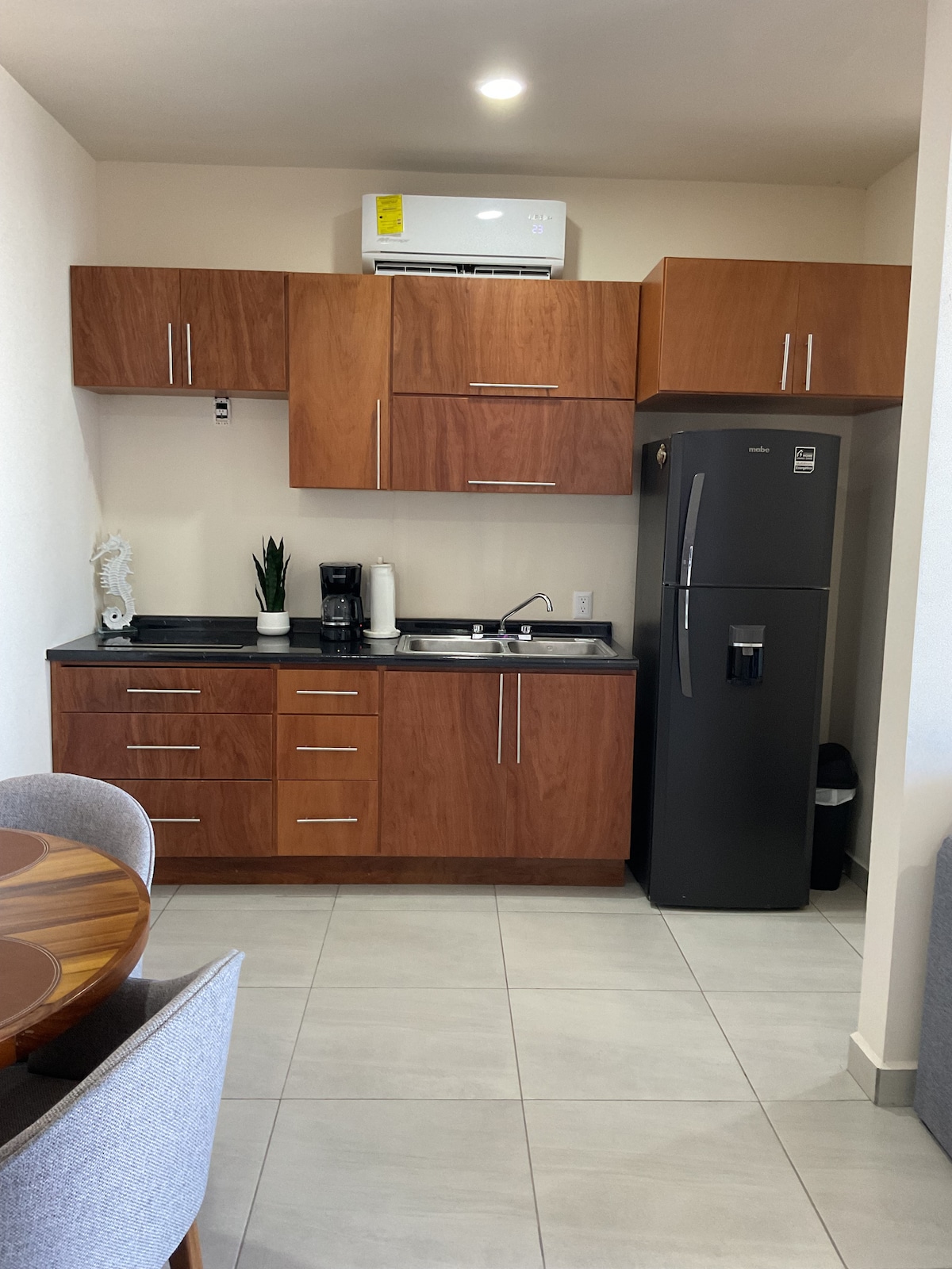 Múscail le fuaim na dtonnta san árasán seo ar imeall na trá in Playa Novillero, áit a bhfuil ceann de na tránna is faide agus is sláine i Meicsiceo. Agus rochtain dhíreach ar an trá aige, is fíor-saoire cois cósta é seo—áit a mbeidh an turas mar chuid den eachtra agus tú ag tiomáint feadh imeall na trá chun an réadmhaoin a bhaint amach. Bain sult as radhairc lánléargais ar an aigéan ón lochtán dín, nó faigh fuarú sa linn snámha úr. Is é an suíomh foirfe é do dhuine ar bith atá ag lorg suaimhnis agus áilleacht nádúrtha.