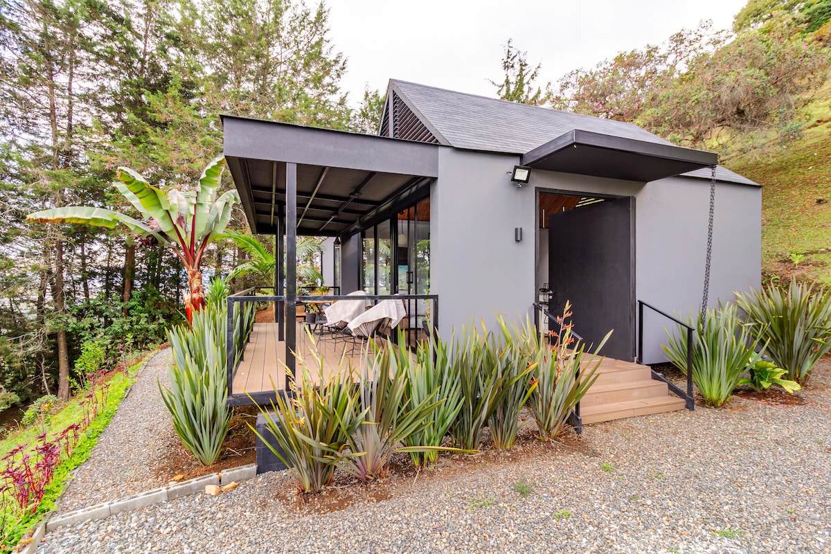 Aimsigh an Glampáil álainn seo nach bhfuil ach 45 nóiméad ó Medellin. Ag ár n-éicealóiste, is féidir leat turais chun Comuna 13 agus Guatapé, turais chun áiteanna caife agus cócó a chur in áirithe chomh maith le suathaireachtaí agus iompar. Bíonn ár bhfoireann ar fáil go dtí 4:00 AM, is féidir tacsaí a shocrú chun tú a thabhairt go díreach chuig do chábán ón aerfort. Reáchtálaimid ár bhFondúireacht Skyline féin ag plandáil crainn dhúchasacha, ag múineadh ióga, ceol agus ranganna Béarla do scoileanna áitiúla. Tagann ár soláthar uisce go príomha ó bháisteach íonaithe agus ritheann an tionscadal ar ghrianfhuinneamh 🍀❤️
