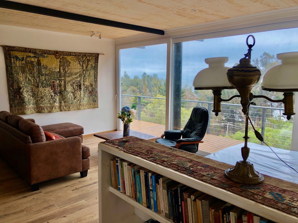 Cuireann ár dTeach Beag Bídeach eispéireas uathúil ar fáil duit a chomhcheanglaíonn simplíocht, síocháin agus nasc leis an dúlra🌿 💚Ardán le radharc iontach 💆♀️Tobán te le haghaidh scíthe iomlán 🔥Gríoscán agus sorn beárbaiciú d'oícheanta réalta 🌳Tumadh Cerro Foraoise Iomlán na Meánmhara 🛏️4 Dhuine aird️phearsantaithe 🔐Árasán príobháideach slán 7 nóiméad ó Laguna de Zapallar. Tá rochtain ar bhóthar na talún. Spás iomlán ciúnais agus suaimhnis a ligfidh duit athcheangal a dhéanamh leat féin agus leis an dúlra.