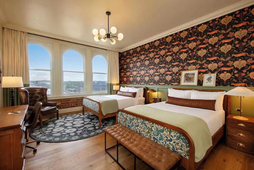 Tá ár Svuít Rí Feidhmiúcháin foirfe le haghaidh fanacht fada, cibé acu an obair nó pléisiúr é do thuras. Soláthraíonn an seomra fairsing seo áit suí, tábla le haghaidh oibre, cruinnithe nó ithe, agus deasc mhór inchoigeartaithe ar airde chun dul i do sheasamh. Lig do scíth lenár dtocht Tuft & Needle, braillíní boga Brooklinen, meaisín torainn bháin, agus dallóga dúghorma.