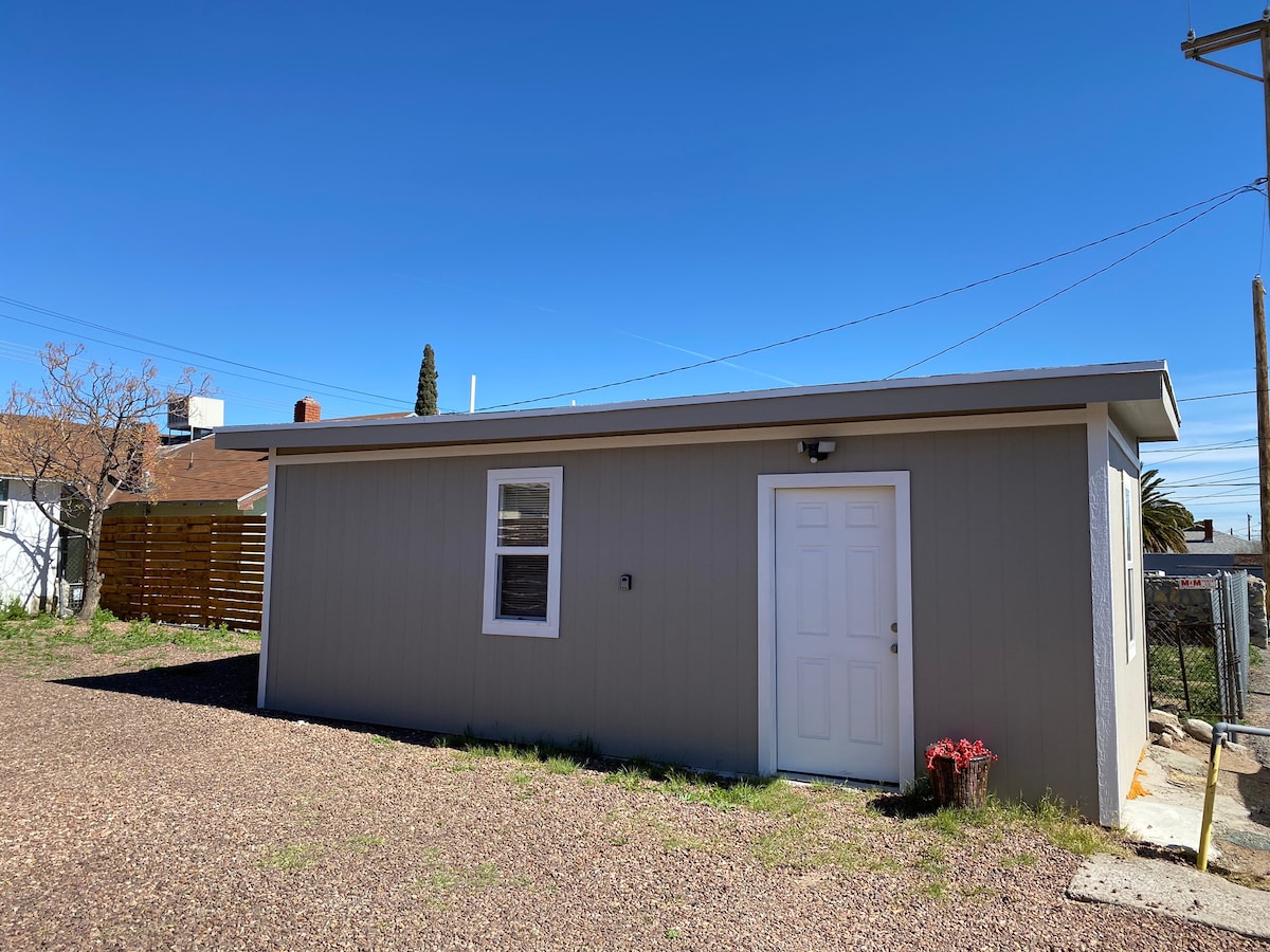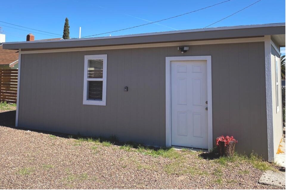 Bain sult as an stiúideo Styled Industrial seo, ach 5 nóiméad ó Aerfort Idirnáisiúnta El Paso, Ft. Bliss agus I -10! Suite go lárnach, tá an teach seo nóiméid ar shiúl ó roghanna siopadóireachta agus bia iontacha agus 20 nóiméad ar shiúl ó áit ar bith sa chathair! Feistithe le cistin agus áit itheacháin lánmhéide, 1 seomra folctha, agus leaba de mhéid na banríona, is féidir leis an Teach Beag Bídeach seo 3 chodladh le leaba thoilg fillte. Tá an teach oiriúnach do pheataí, agus tá clós beag thart air chun freastal ar do chairde fionnaidh laistigh agus lasmuigh.
