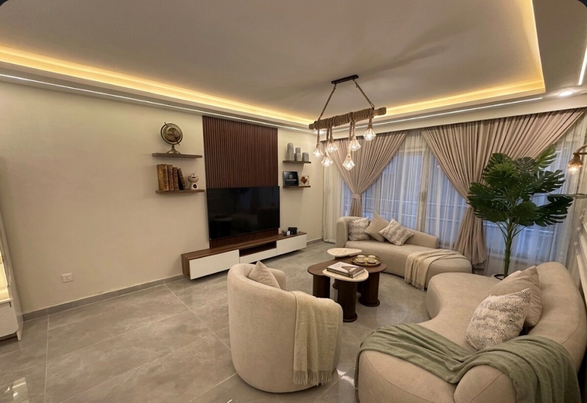 Fan in árasán fairsing compordach 3 sheomra leapa atá suite go hiontach go lárnach, cúpla céim ón gCorniche agus gar don fharraige. Tá an t-árasán foirfe do theaghlaigh nó do ghrúpaí agus tá rochtain éasca ón árasán ar chaiféanna, ar shiopaí agus ar atmaisféar bríomhar cois cósta Alexandria. ⭐ Ardmholadh ó aíonna roimhe seo maidir le glaineacht, compord agus suíomh. Tá rochtain ar ardaitheoir, Wi-Fi tapa, féinseiceáil isteach, páirceáil saor in aisce agus ceithre theilifíseán sa teach—rud a fhágann go bhfuil sé foirfe do chách.